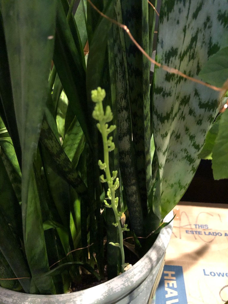 Another plant I now realize I helped is this mother-in-law’s tongue/snake plant that was being thrown away when we moved to new offices at work. I have three different pots of it now, but the happiest one is at the Bobcat Lair. How do I know it’s happy? It’s going to bloom! I’ve never seen one of these bloom.