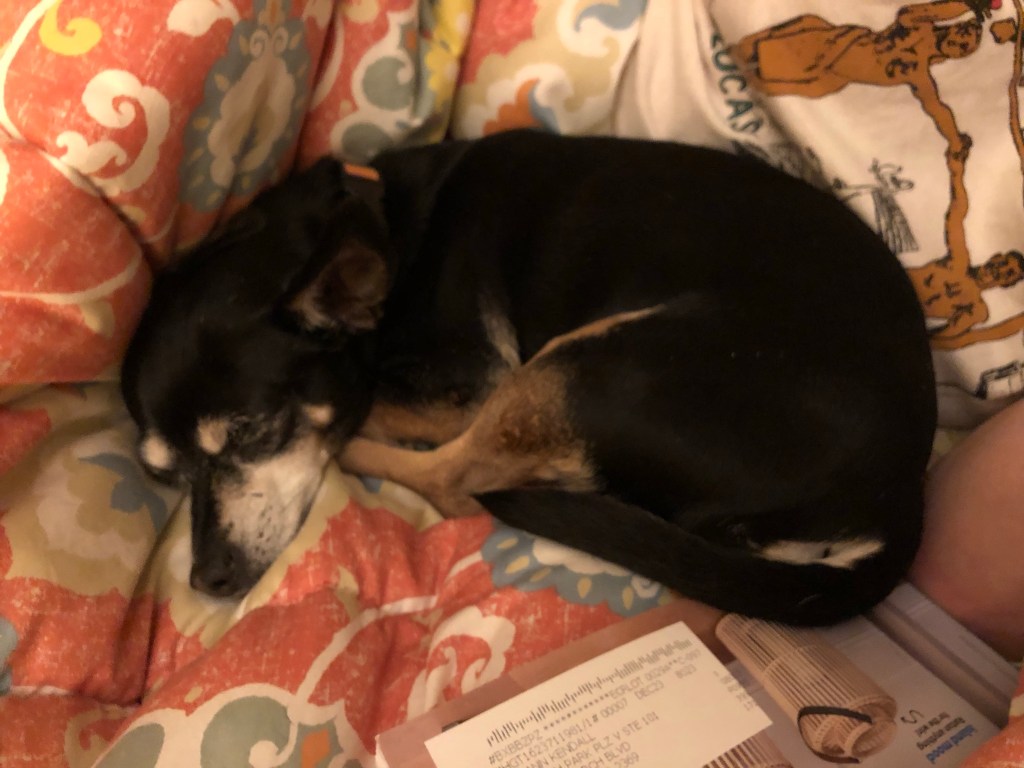 This morning I had Carlton for a long time, and he was not about to let me do anything with my left hand except pet his long neck while he stretched his head straight up. Then big ole Harvey wanted some time with me. I’ve mentioned before that he thinks he’s a lapdog now, and sure enough, he managed to drape himself over my entire lap. We had a nice snuggle (I originally wrote “struggle,” which may, in fact, be accurate), though that bulky dog sure is heavy.