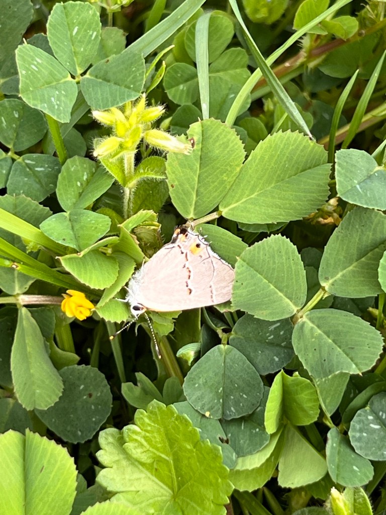 It flew over to a vine just beyond the edge of the woods. The butterfly spent a lot of time going from leaf to leaf. I actually hadn’t noticed the vine before, but looking at it I realized it resembled a passion vine. I hadn’t seen any here yet, and there it was, right in front of me.