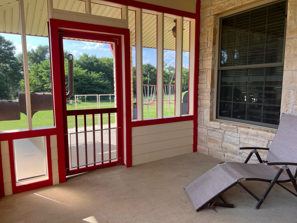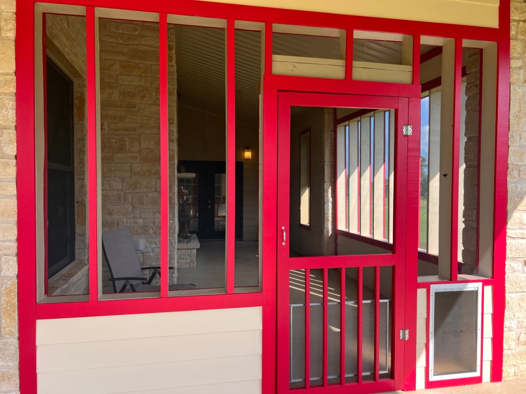 Note we have a dog door for the canine family members. They’ll have to suffer with TWO dog doors to get out.
