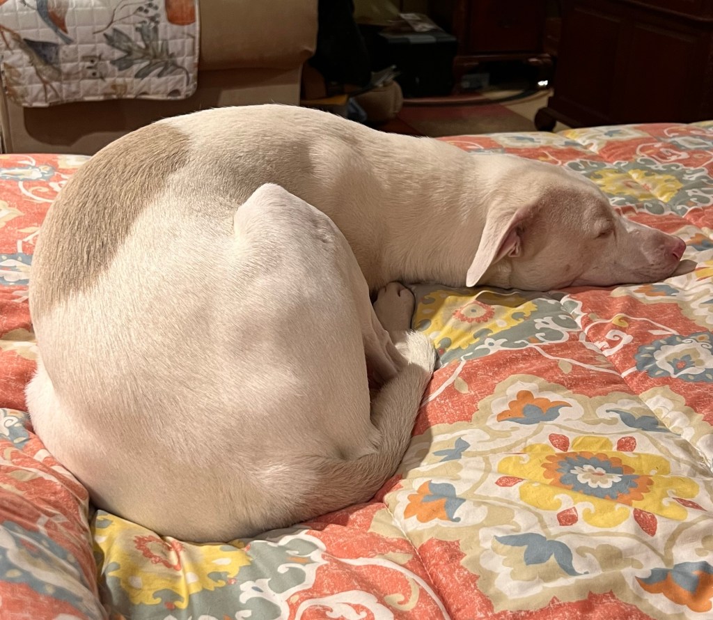 This was such a pretty day. It started out cool and barely got to 70°F. I had hoped to spend most of the day outdoors, and I got a good start in the morning by taking a long walk, then guarding two escaped calves until the owner could move them back inside. Only one truck was going fast enough to hurt them but I slowed it down. They’re valuable livestock!