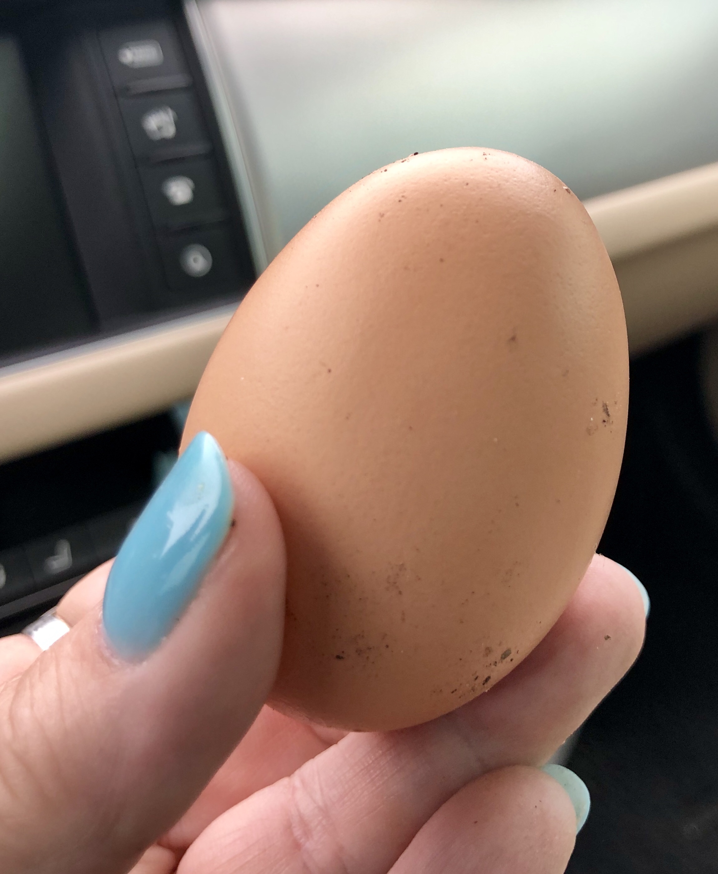 Sure enough, no eggs (but snake is gone). I glanced over at the place next to the cabin, since I’d found four eggs there last week. Yes! An egg!