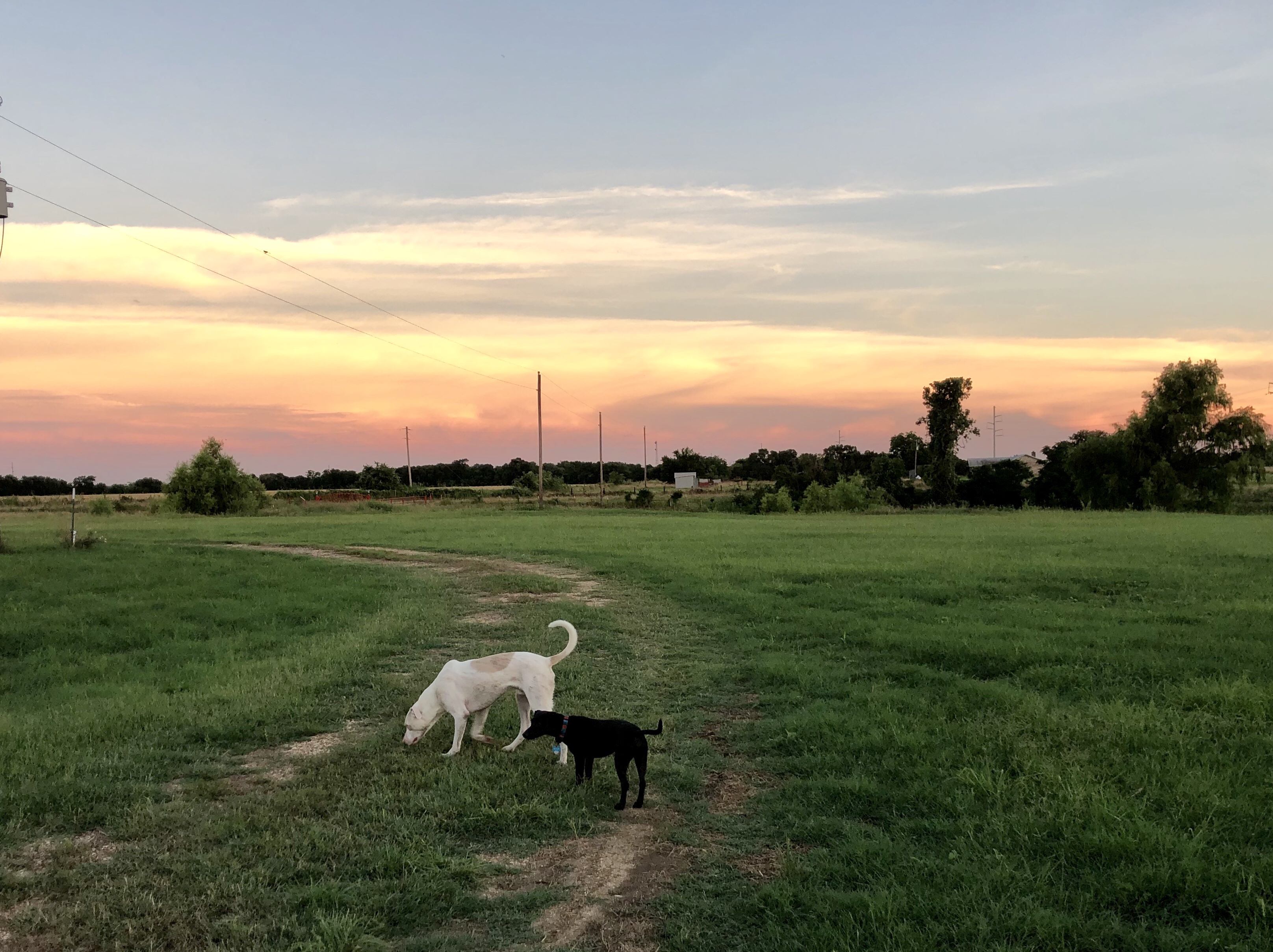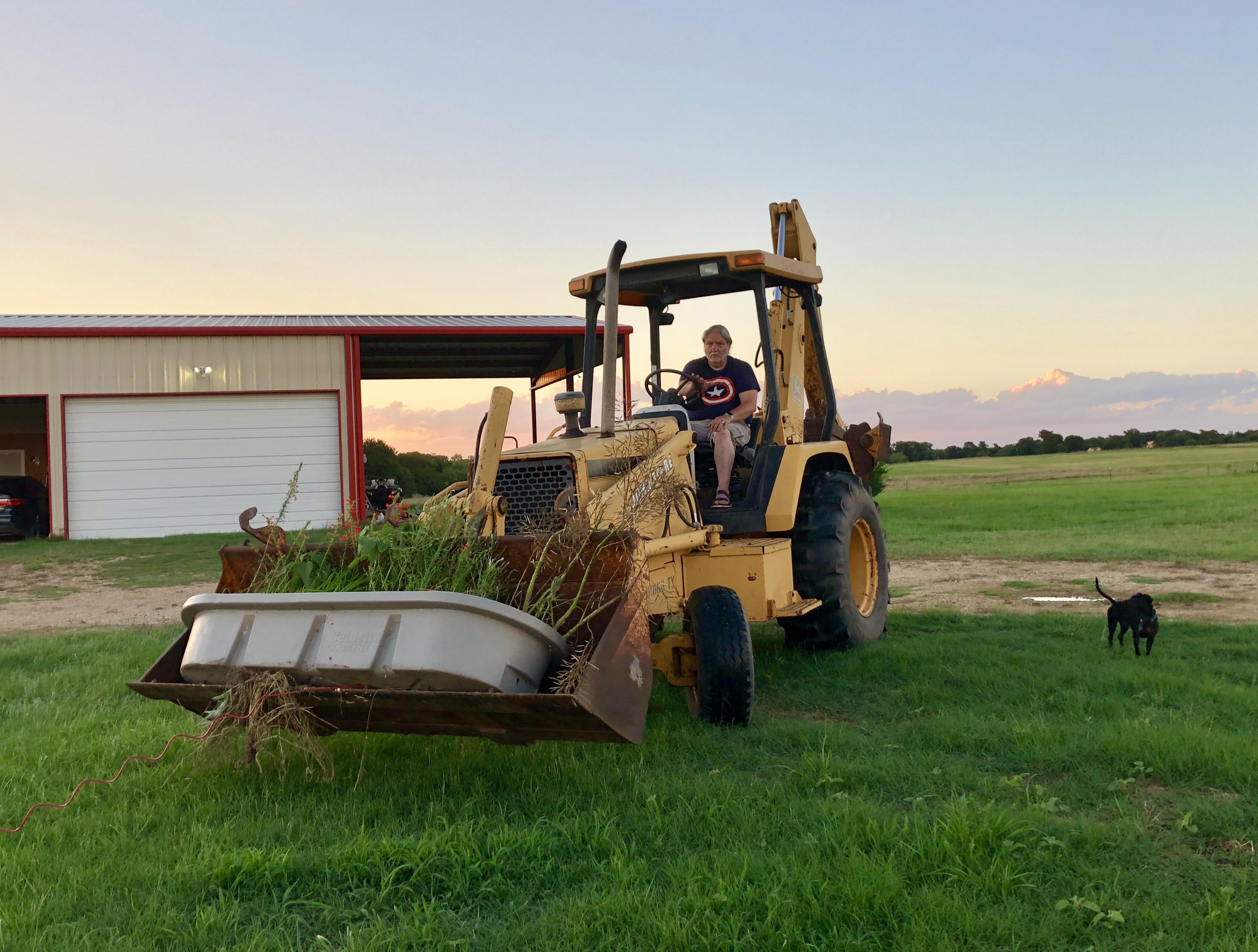 And we’ve been able to use the big ole front-end loader to rearrange the raised beds (he couldn’t mow between them where they were). The dogs enjoyed it, too.