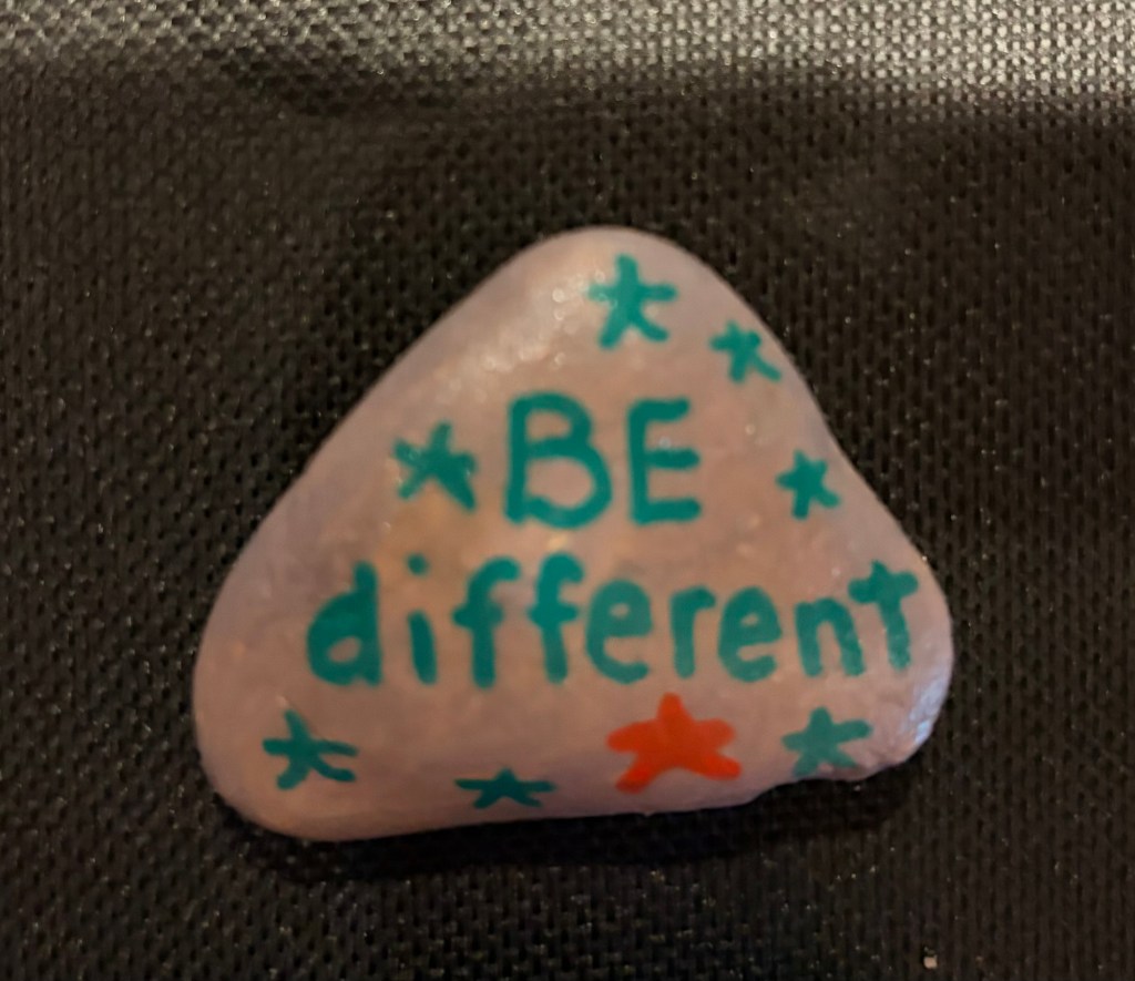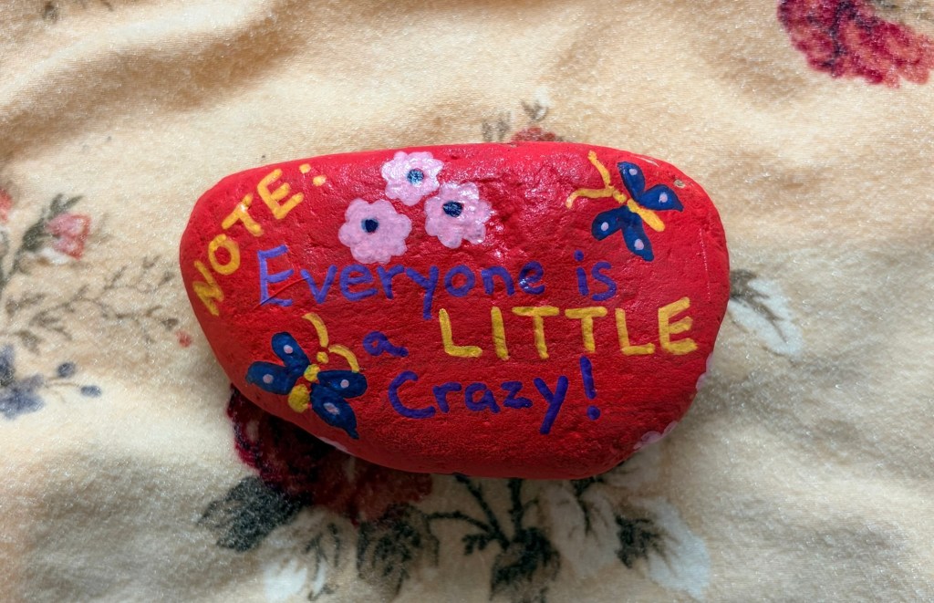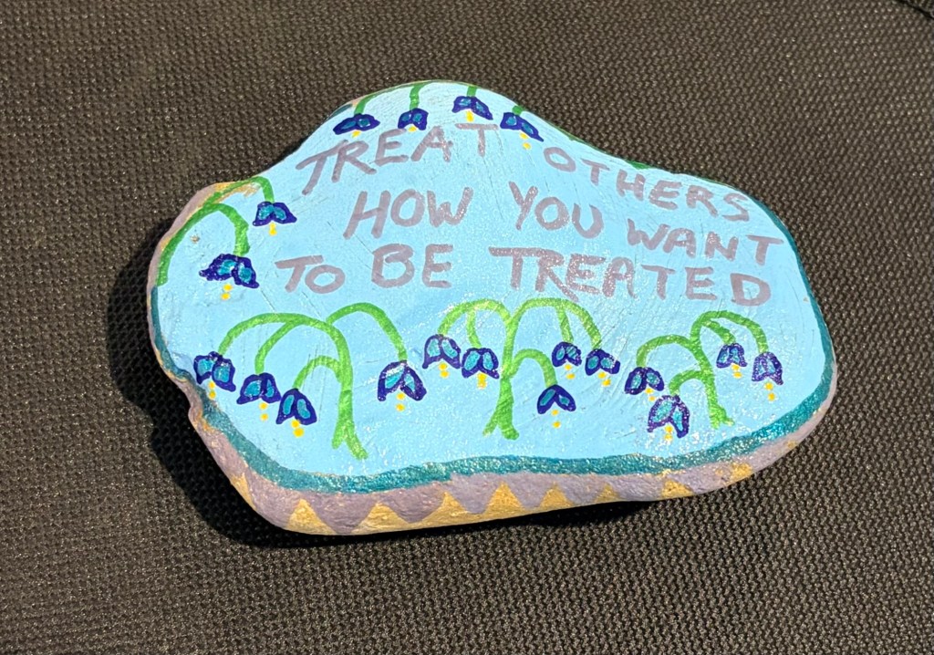 I felt good today wearing my “You matter” shirt and painting good intentions into poorly lettered Reminder Rocks. it helped me send out positive thoughts, energy, intentions, or vibes even on this scary day. I kept channeling acceptance until I felt okay.