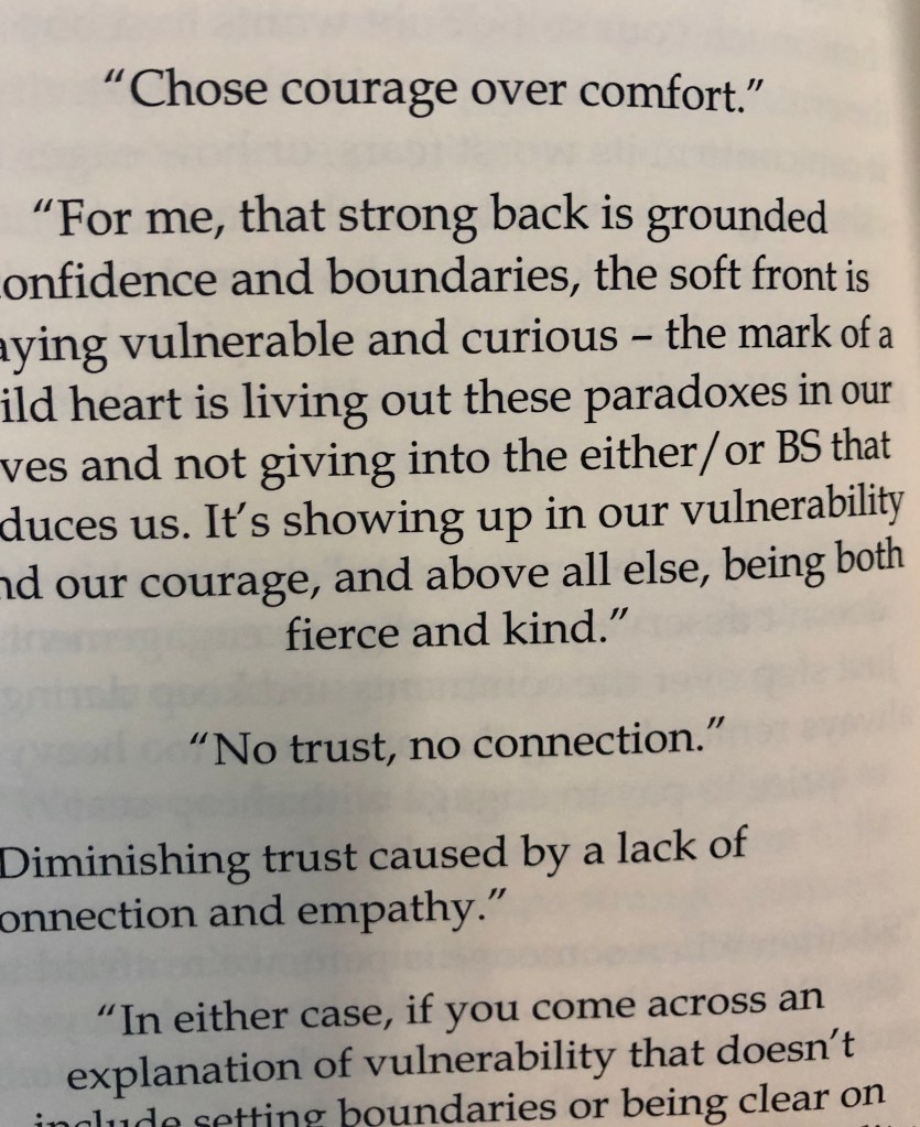 The work book club is going to read Dare to Lead, by my buddy Brené Brown. When I went to pick up a second copy (because I hid my first copy when I pitched a fit about how many times she said “lean in”), I saw there was also available a study guide for the book. I thought it would be great to have some questions and ideas to talk about when we have our meetings.