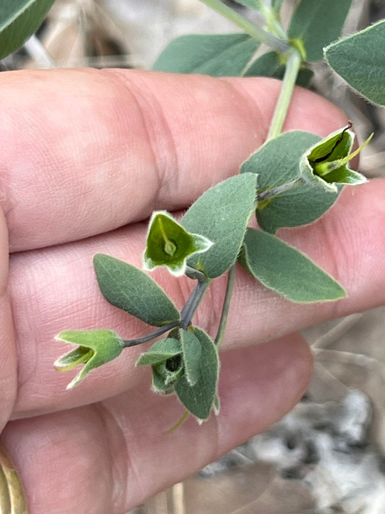 You can’t eat this, but isn’t it pretty? Wild indigo sepals after the petals fell out. Baptisia leucophaea