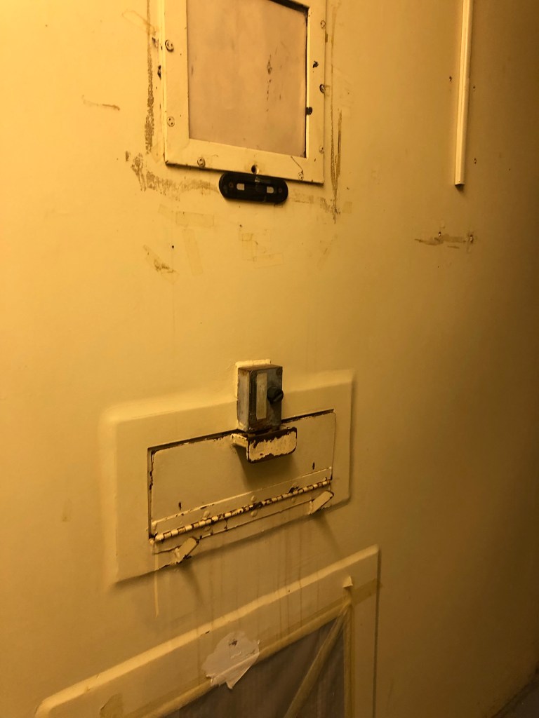 The heater hole is exactly the size of a full-length mirror, and I tried to look at myself in it.