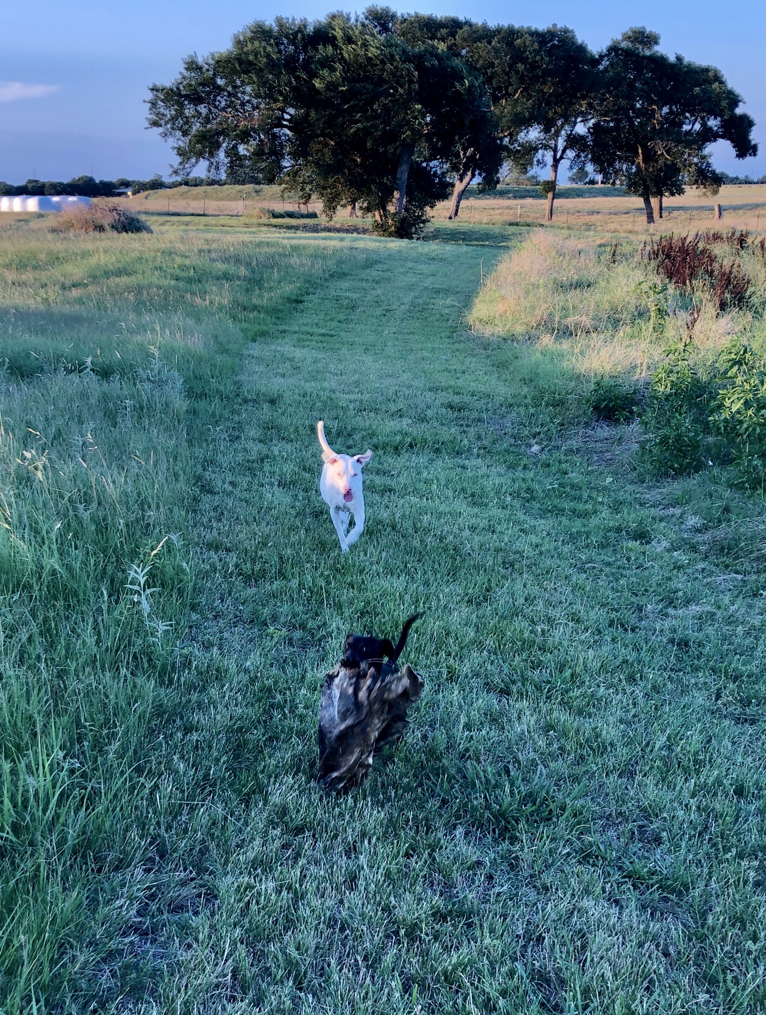 Later, I needed some exercise, so Lee and everyone except Alfred went for another walk. The light led to many stunning photo ops. I turned around after taking a picture, I saw Vlassic emerge triumphantly from the tall grass, with something as big as himself in his mouth, with Carlton trailing behind.
