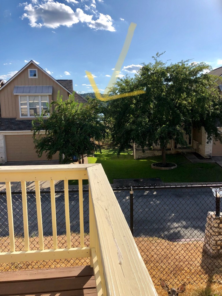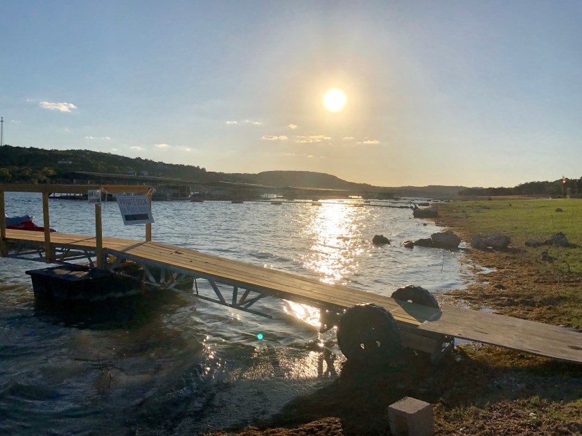 It’s in Lago Vista, an oddly endearing resort village on the north shore of Lake Travis. Well, it’s a condo all right. I think it’s the least charming one I’ve ever been in. It appears to be the same age as the Bobcat house, only with very few upgrades. (Bathrooms have been done, on a budget.)
