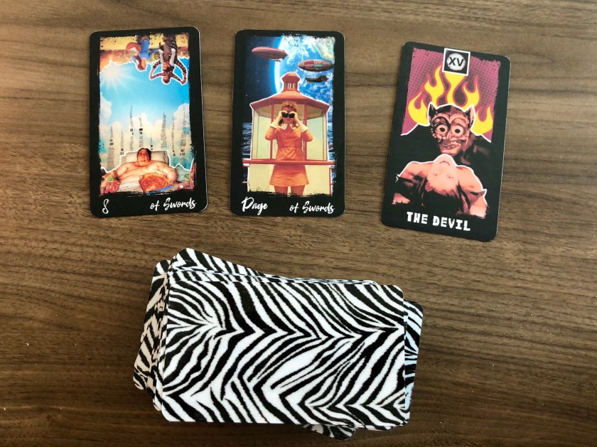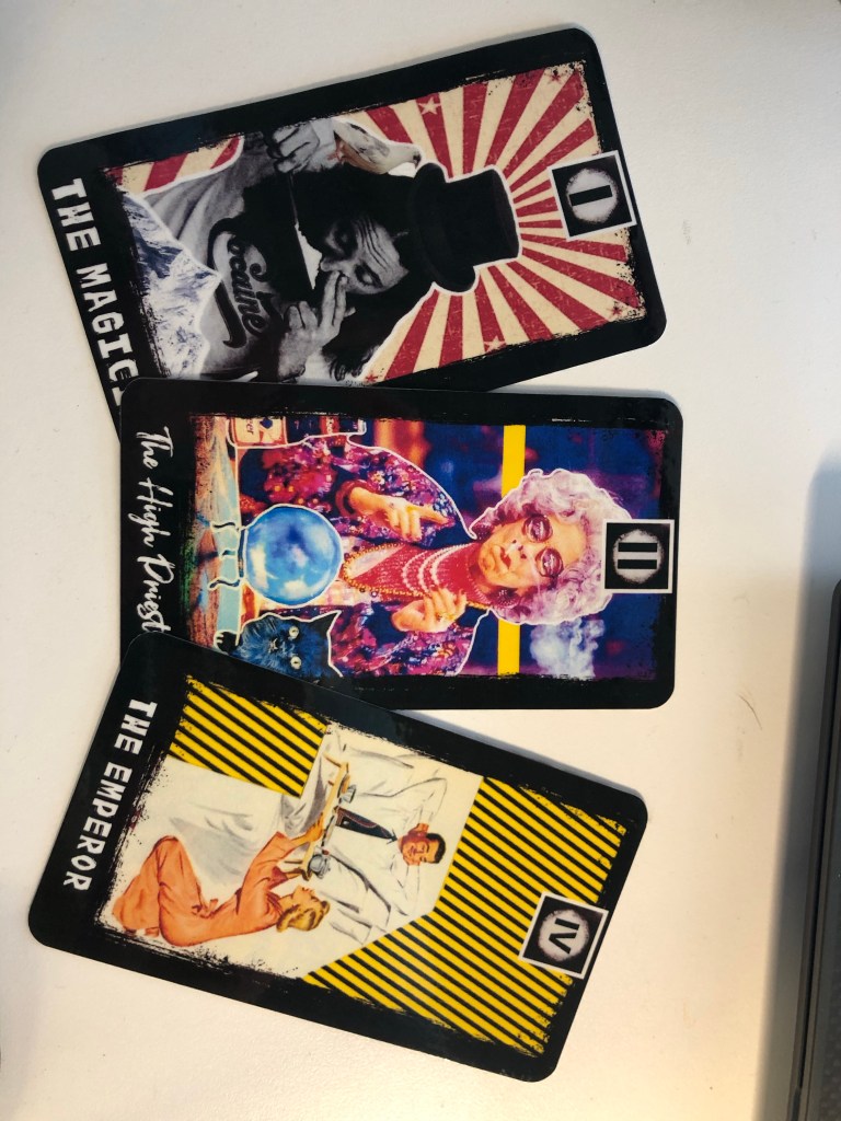 Harley Spencer did a great job on the very badass collages on the cards. From what I can tell the obviously handmade and beautifully crafted version of the cards that I got will soon be replaced by mass market versions. That will get more people a chance to experience this deck, which is fantastic.