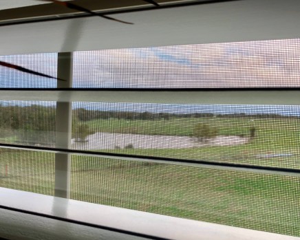 Don’t the screens and the blinds add an air of mystery to the very full back pond? I usually doesn’t go all the way to that black thing at right (which is an old well or something).