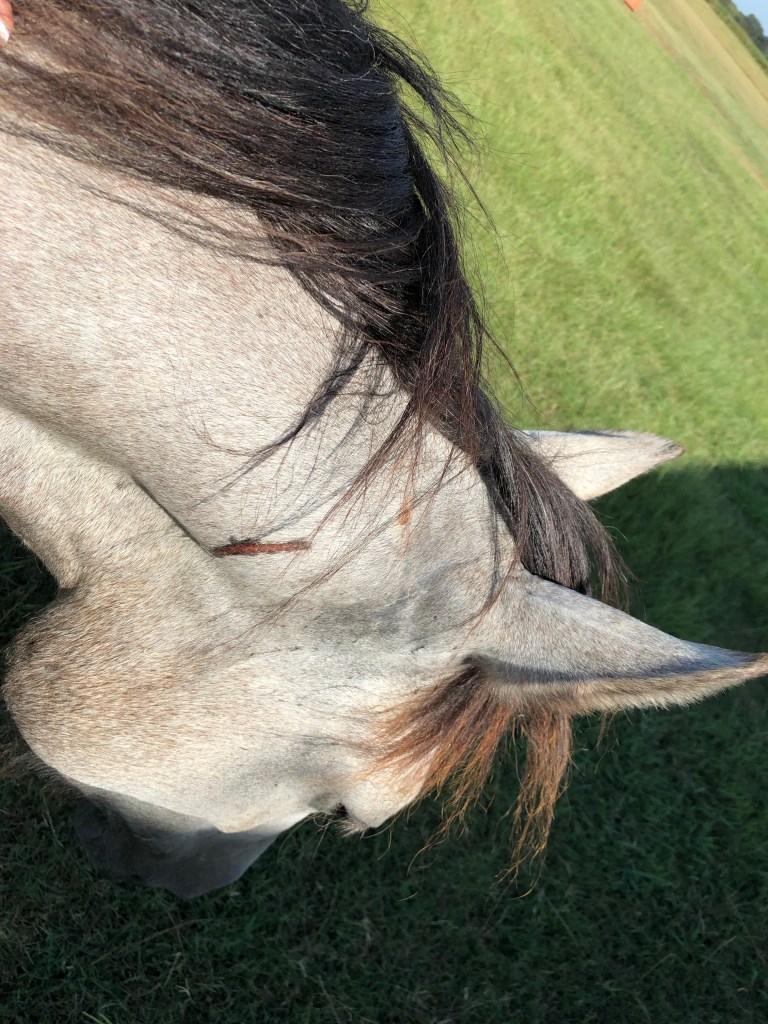I’m proud that I didn’t panic and just took care of things. I’m also glad neither of us was hurt more than we were. The other horses being so attentive warmed my heart. I even had a hard time getting Apache into the pens, because Drew and Mabel wanted to check on him.