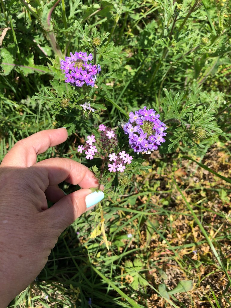 I also stopped to look at flowers. These two types of verbena look very different right next to each other!