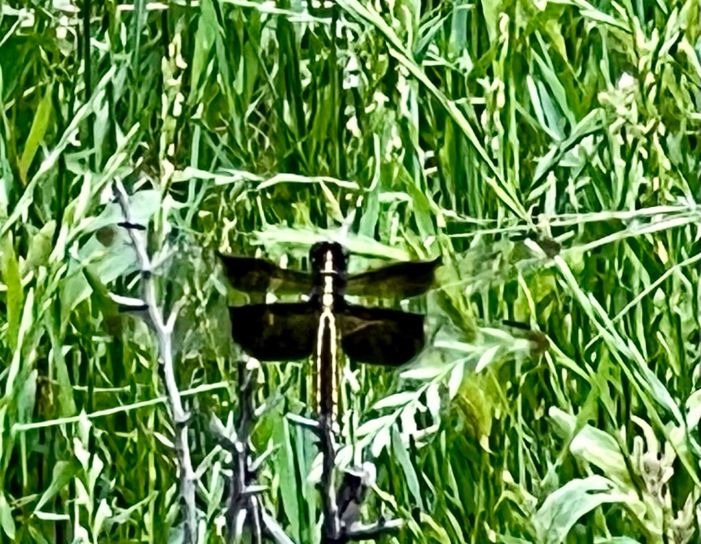 I managed to exit Hilda and call Lee to bring the tractor to pull me out. Of course, while I waited I took pictures of what I saw. At lest I found a dragonfly, a spider, and a cool robber fly that looks like a bumblebee.