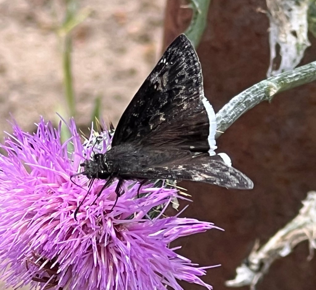 I did it, though! And after we freed Hilda from the mud, I was rewarded by finding this cool funereal duskywing at the gate out of the pasture. Seems perfect.
