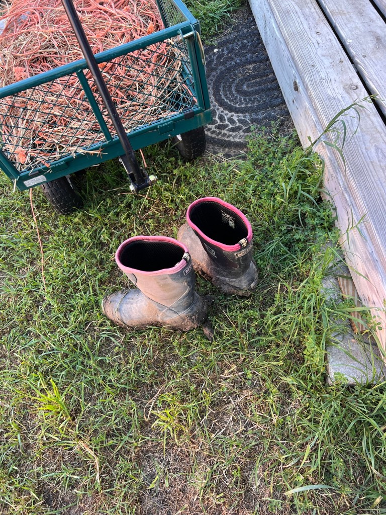 Soon enough, Lee showed up with the tractor. I was glad until I realized I’d have to crawl in the sticky mud to attach the chains to drag Hilda out. nope, that was not fun. I hate mud. I really hate clay mud.