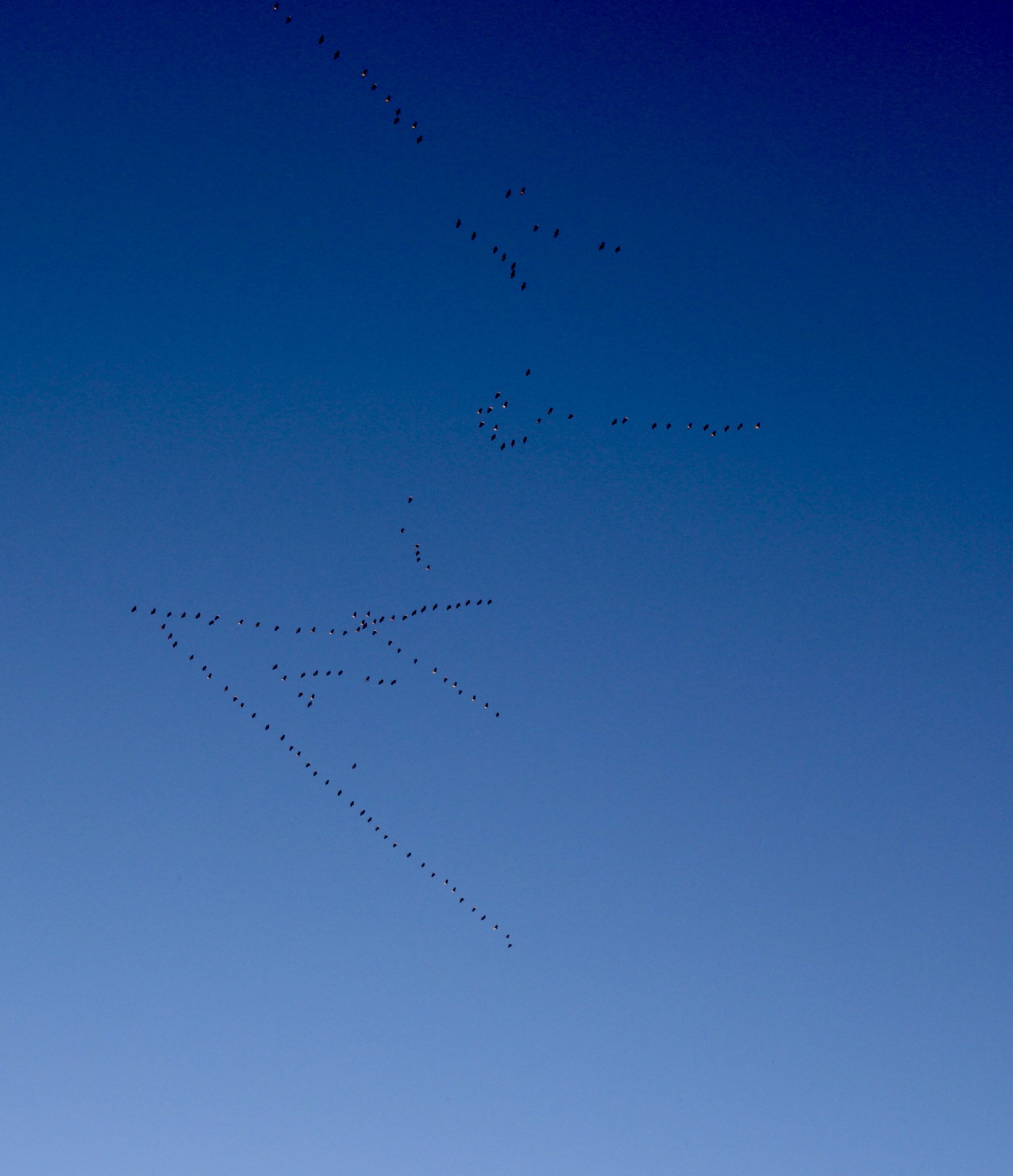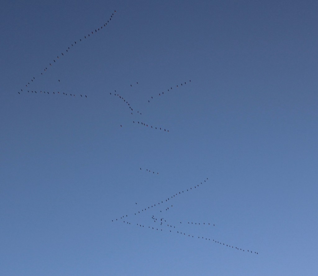After feeding the horses, I sat down to try for the third time of the day to breathe and meditate. That’s when the owls went into heavy hooting mode. So I just listened. Finally, I was able to regulate my breathing and get back into the moment…just in time for flocks of Sandhill Cranes to clamor their way across the crisp afternoon sky.