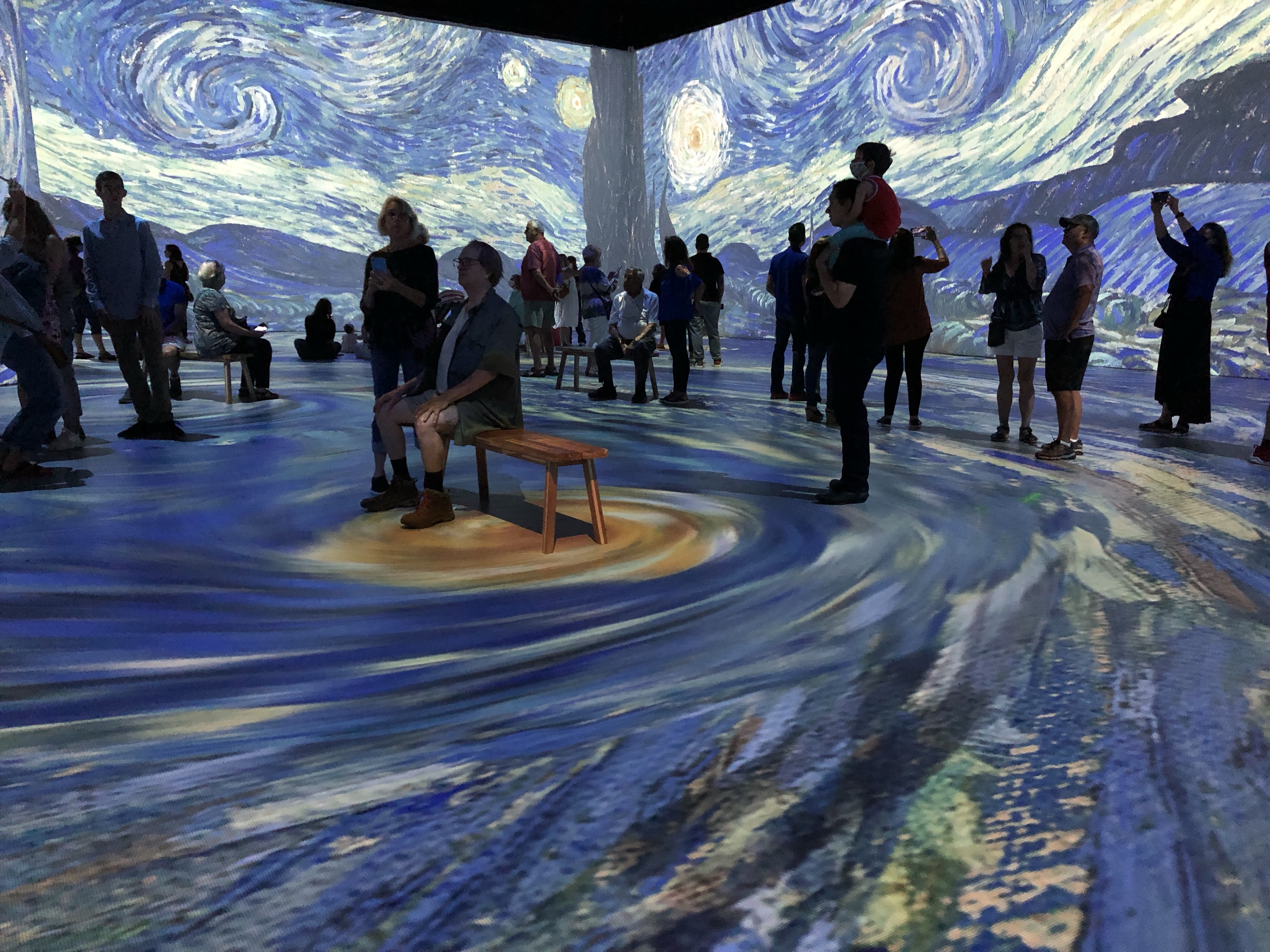 What a treat today was! Anita bought us tickets to Beyond Van Gogh: The Immersive Experience months ago, because we’d read about the exhibit when it was in other cities. Today was the day of our appointment, so I drove in to Austin and worked until time to go over to the Circuit of the Americas place where they do car races, concerts, and such.
