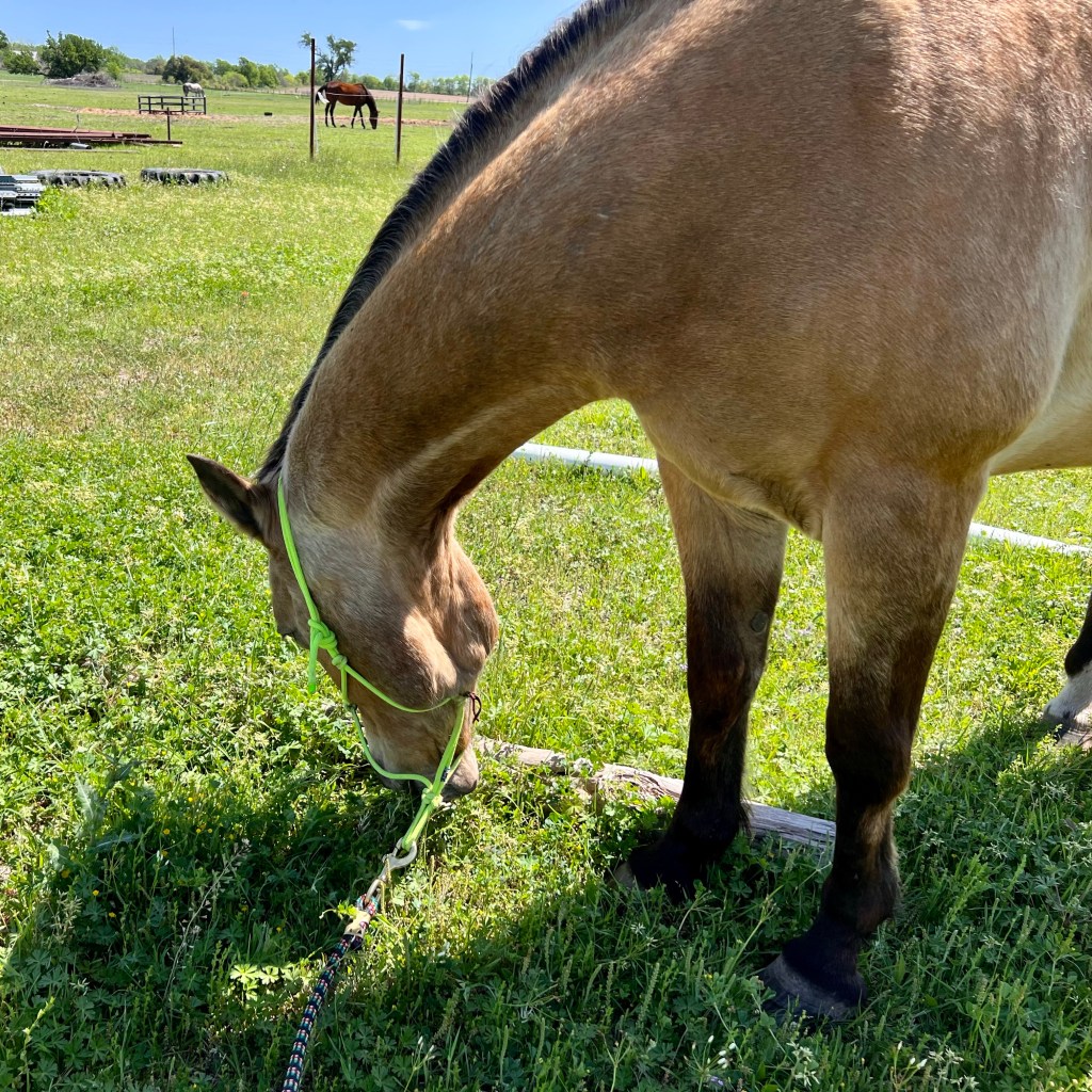 The day was so nice I decided to groom whatever horse showed up. Dusty won the prize and got a nice de-shedding. He’s almost finished shedding and is looking shiny. Even his poor little mane is growing in, and his Drew bites are healing. They still play a LOT.