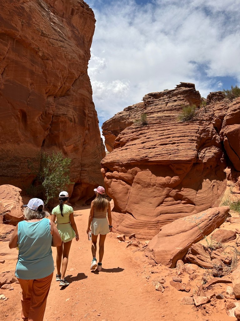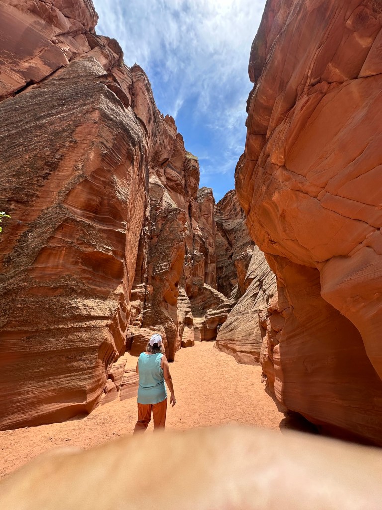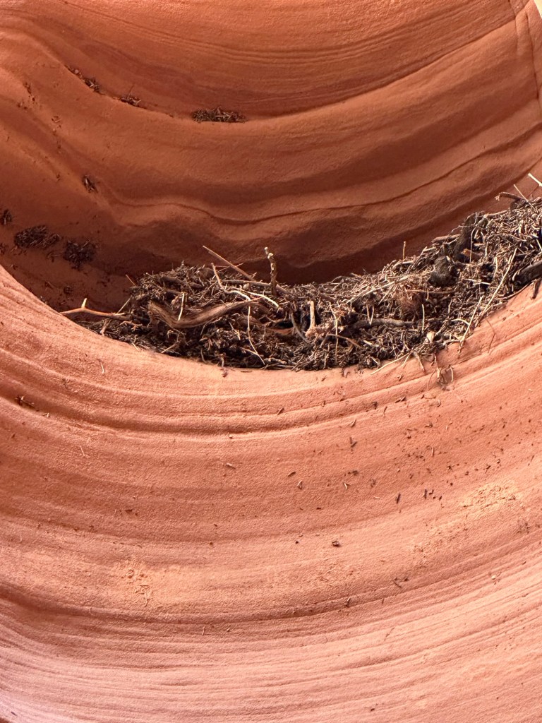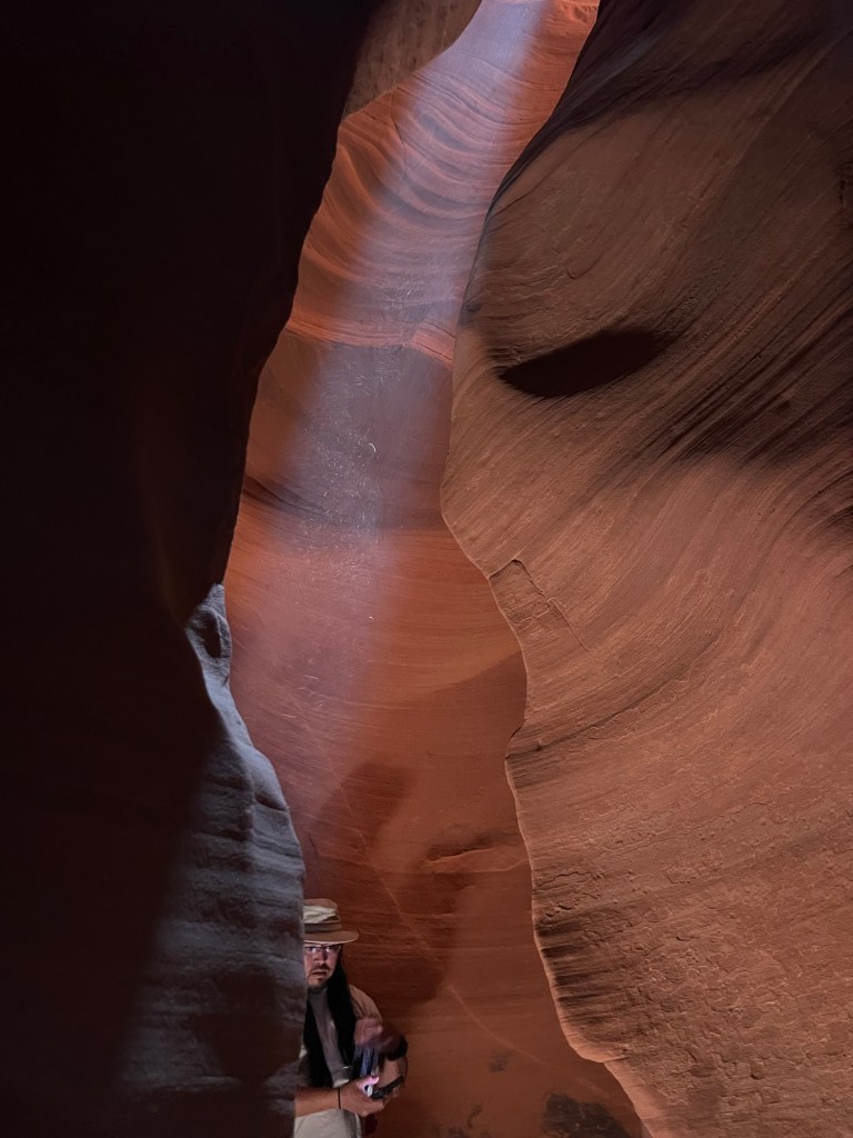 So, this is a slot canyon formed by flooding and wind, so there are beautiful patterns in the sandstone. There are also incredible shadows made by holes in the canyon. It’s simply breathtaking. Please enjoy and click to see the whole images. These are from both me and Lee.