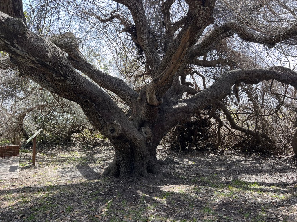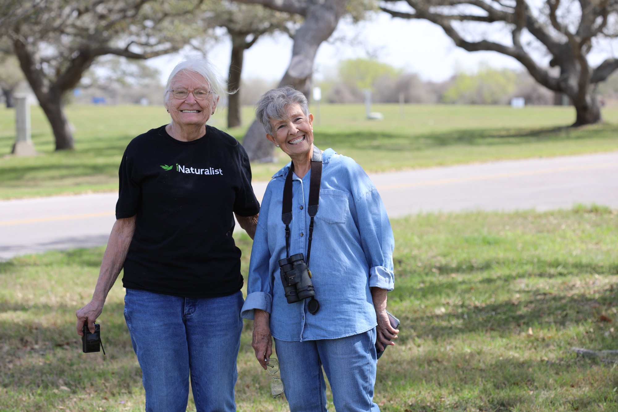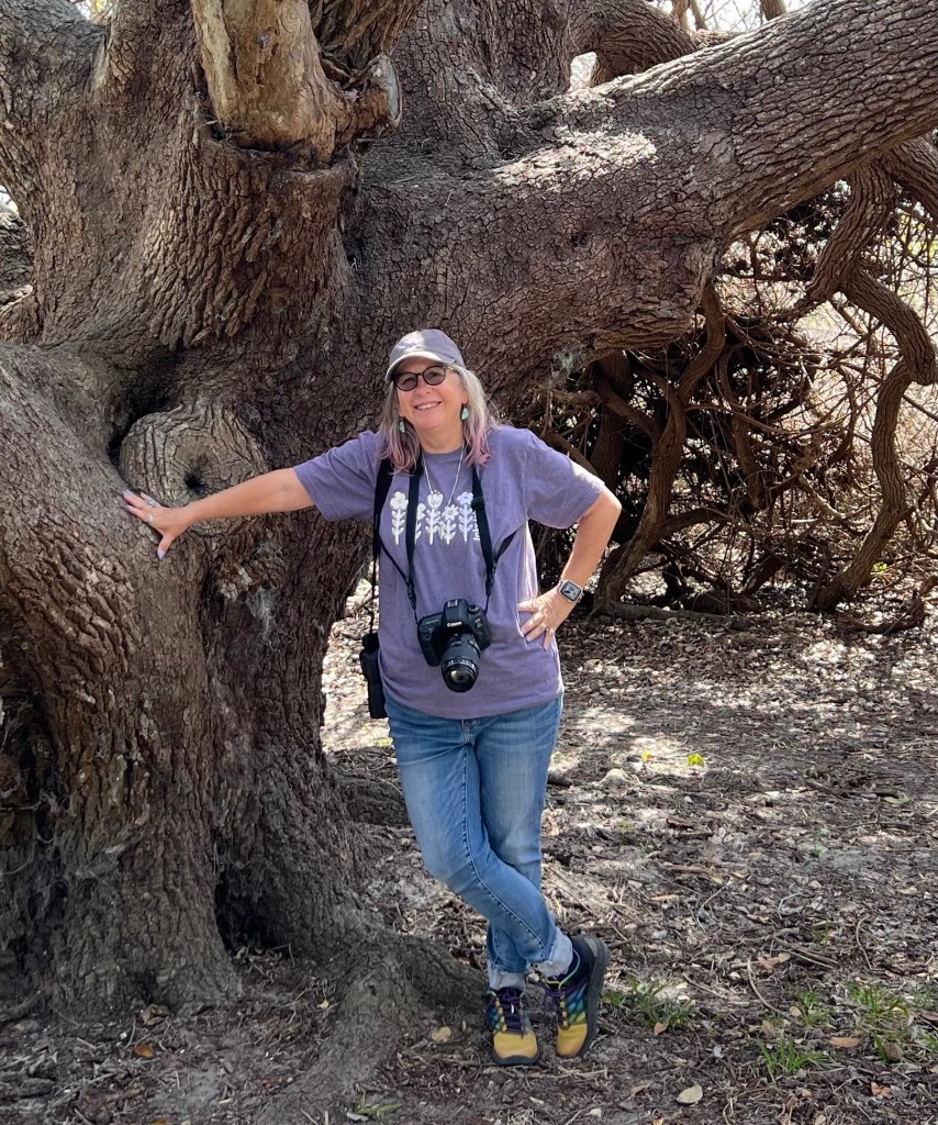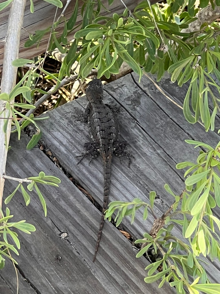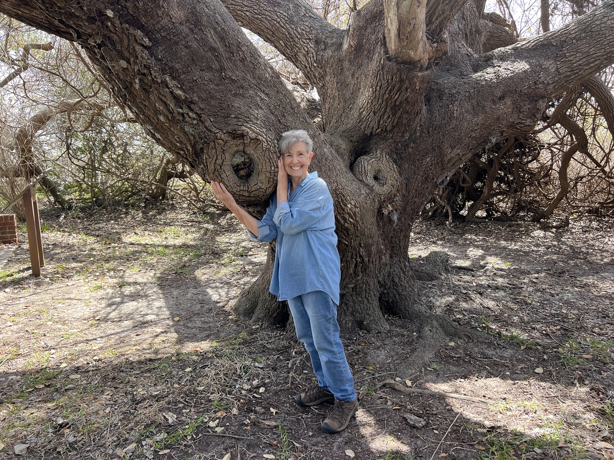 Texas spiny lizard TrailBeachLayered grasses and treesAnother old treeLinda Jo and AnnDoing citizens science Looking all photographer-like. Hugging a tree.