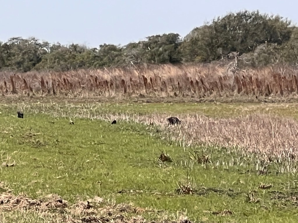 We next drove to Jones Lake, a freshwater lake on the reserve. It was really low, so all the life was concentrated around it. There was a group of Blue-winged Teals and one Greater Yellowlegs off on one side, and a family of feral hogs on the other. In the middle, in what little water was left, was an alligator.