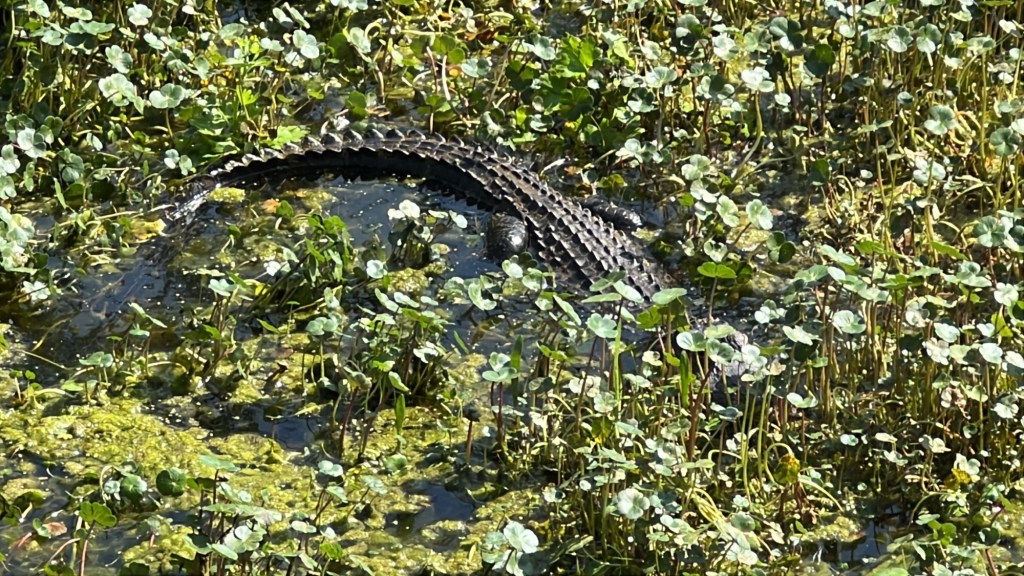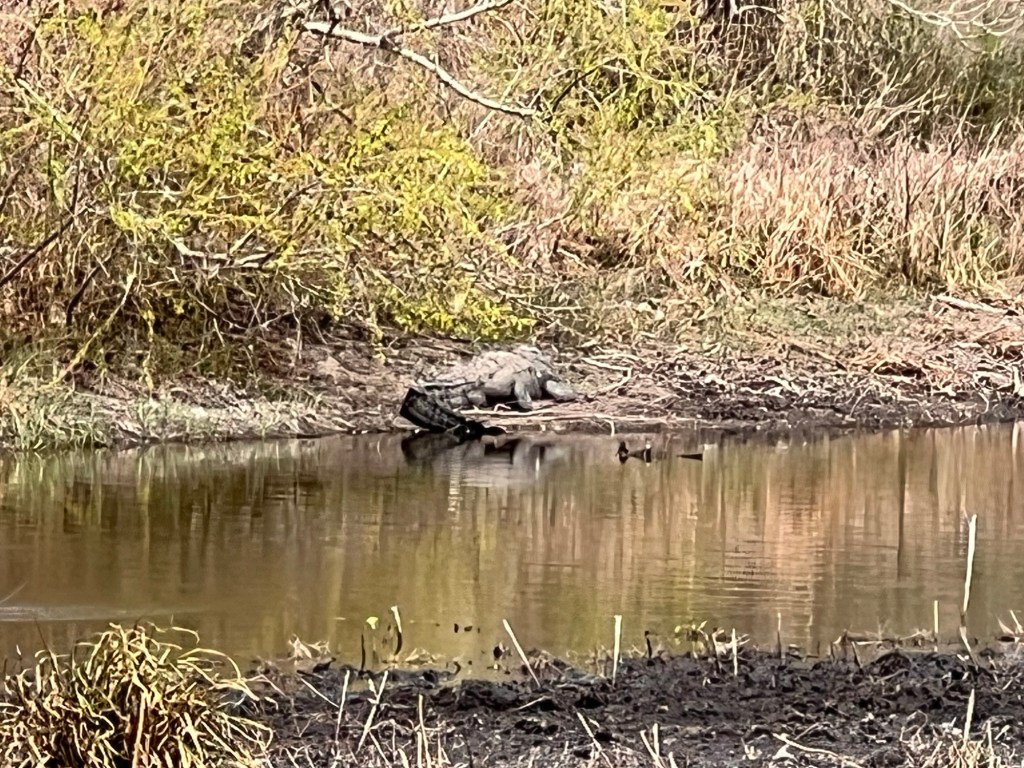 Only after a while did we realize there was another gator on the shore. It was huge. It looked like it had eaten a piglet. I bet it’s famous in these parts!