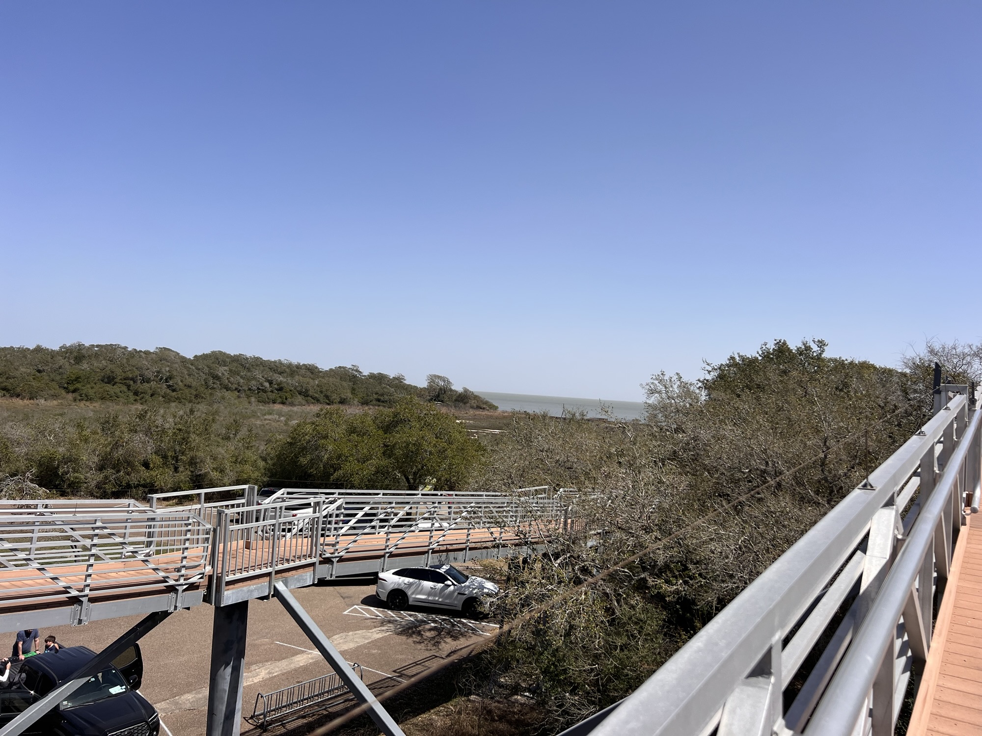 Next we ventured past the bay on our way to the observation decks and boardwalks. No one wanted to go up but me, even though there was a ramp to go up, not stairs. The view was beautiful across the islands and water. I saw herons and egrets, but that’s about it for birds.