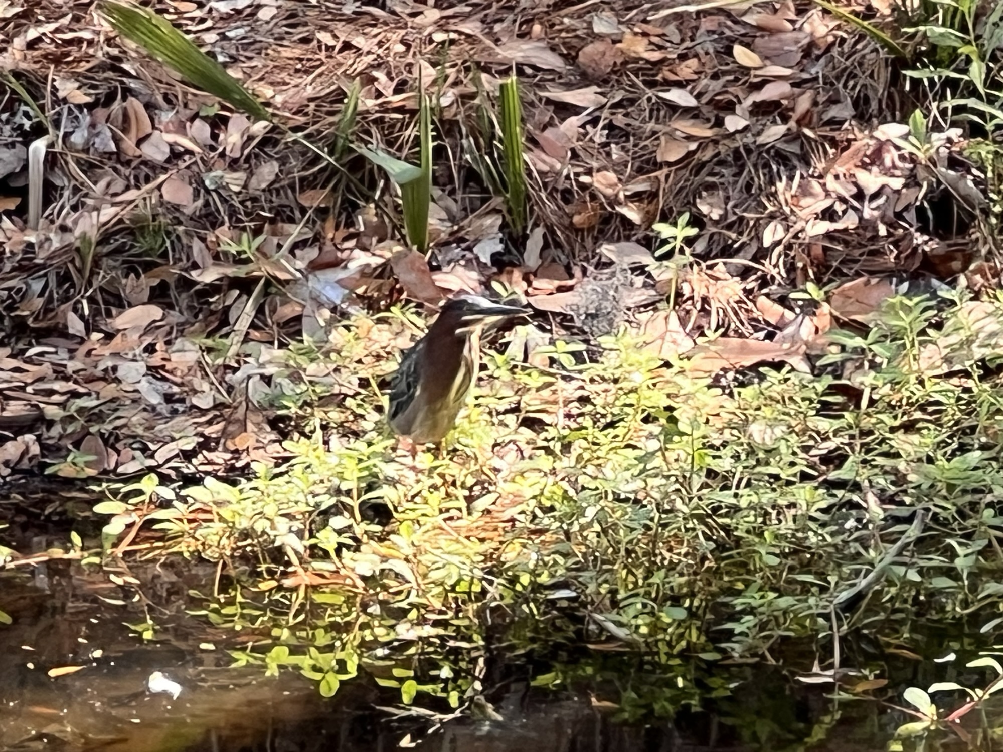 With that musing out of the way, I’ll hit the highlights of my solo day in Hilton Head yesterday. I’m making the most out of having no car by exploring all the nooks and crannies I can walk to. There were no raptor sightings, but I did get startled by unexpectedly encountering a Great Blue Heron in a little pond. The herons here are much more accustomed to people than the ones at home, who fly off if they detect me anywhere near them.