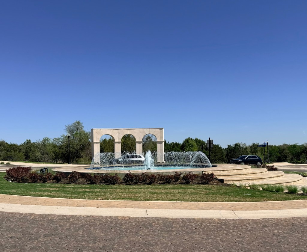 Fancy roundabout leading to what I assume is a nice new neighborhood.