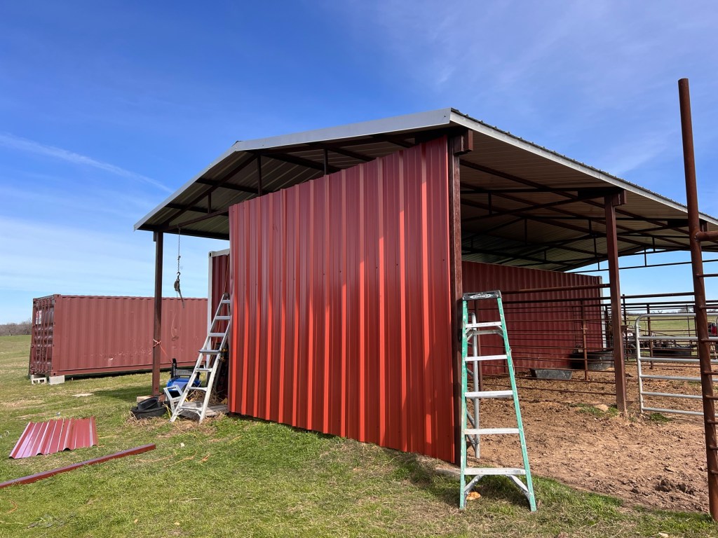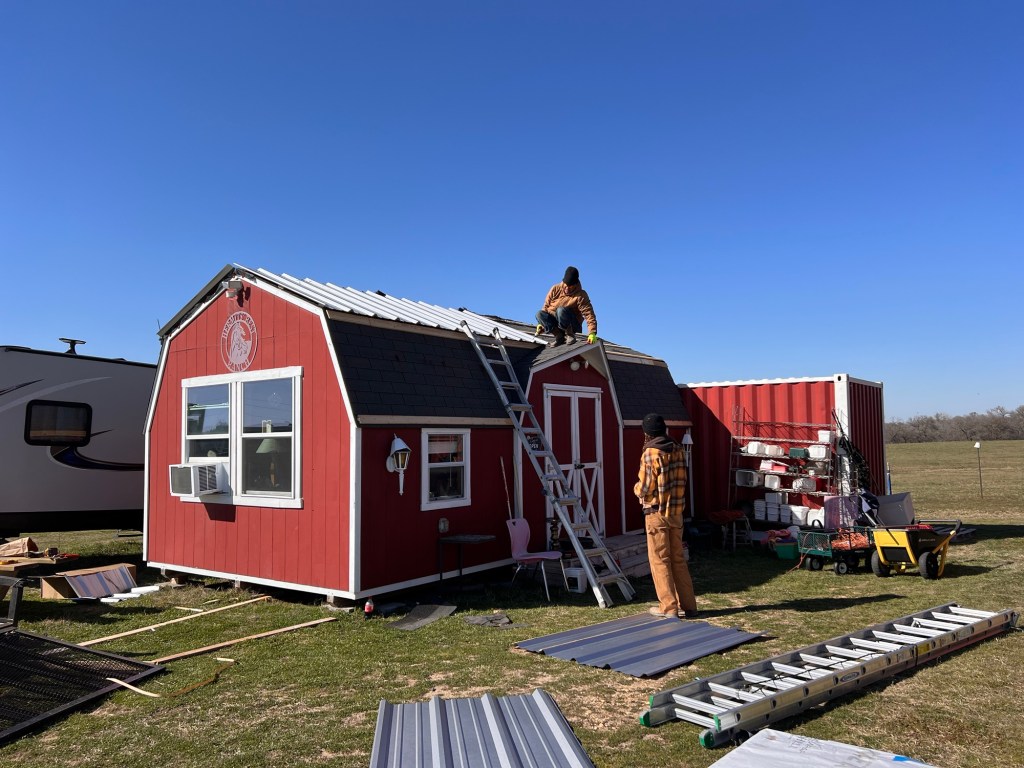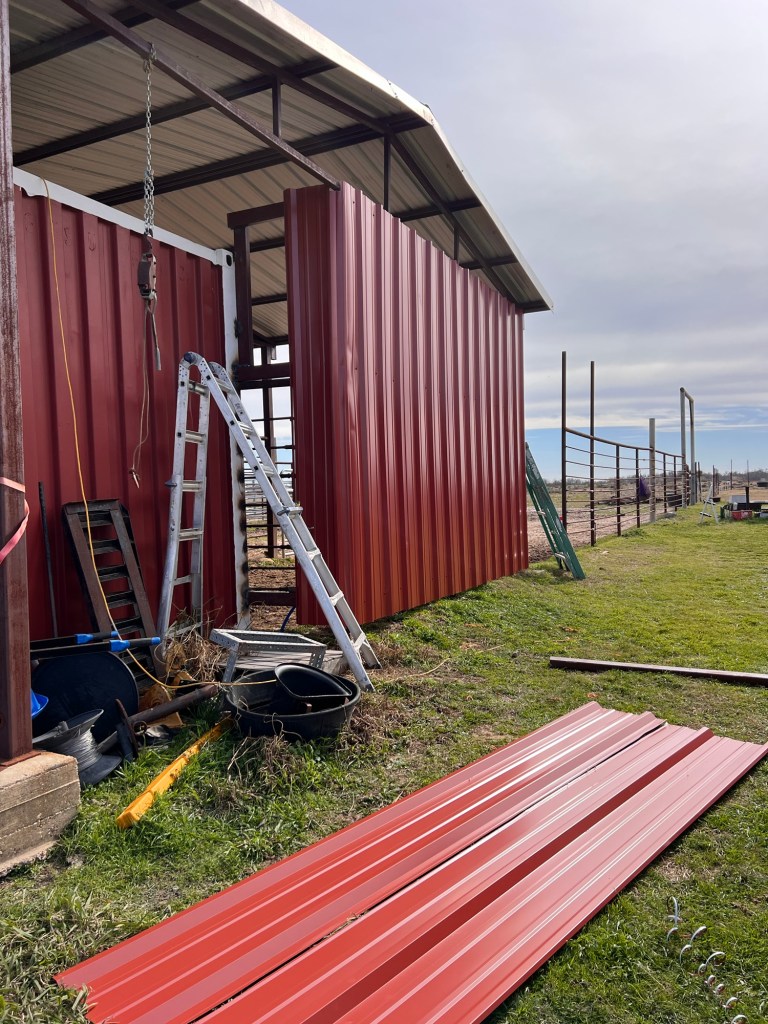 So the men of the house decided to replace the roof in a permanent way, with a lovely metal roof that matches the rest of the ranch buildings.