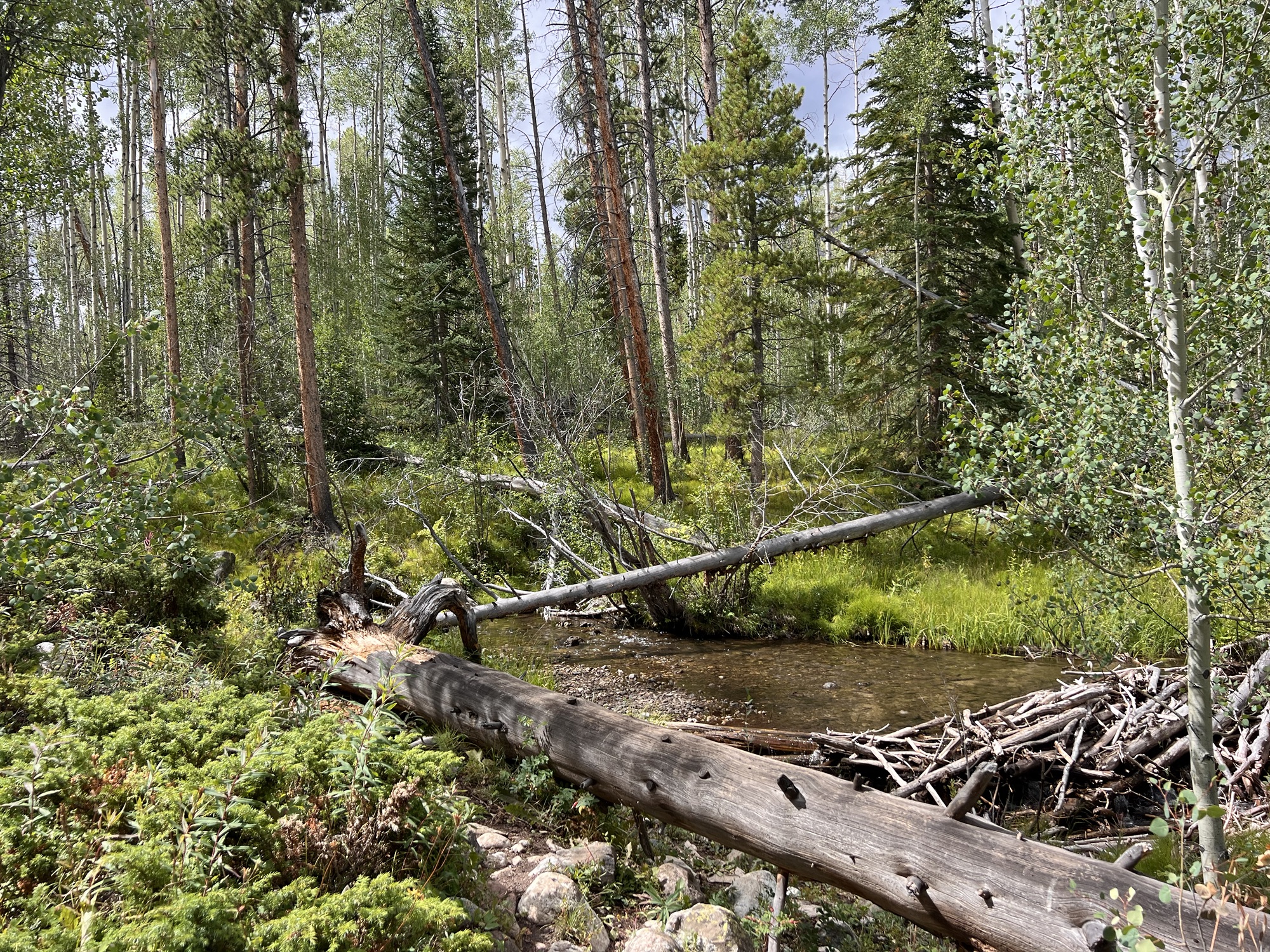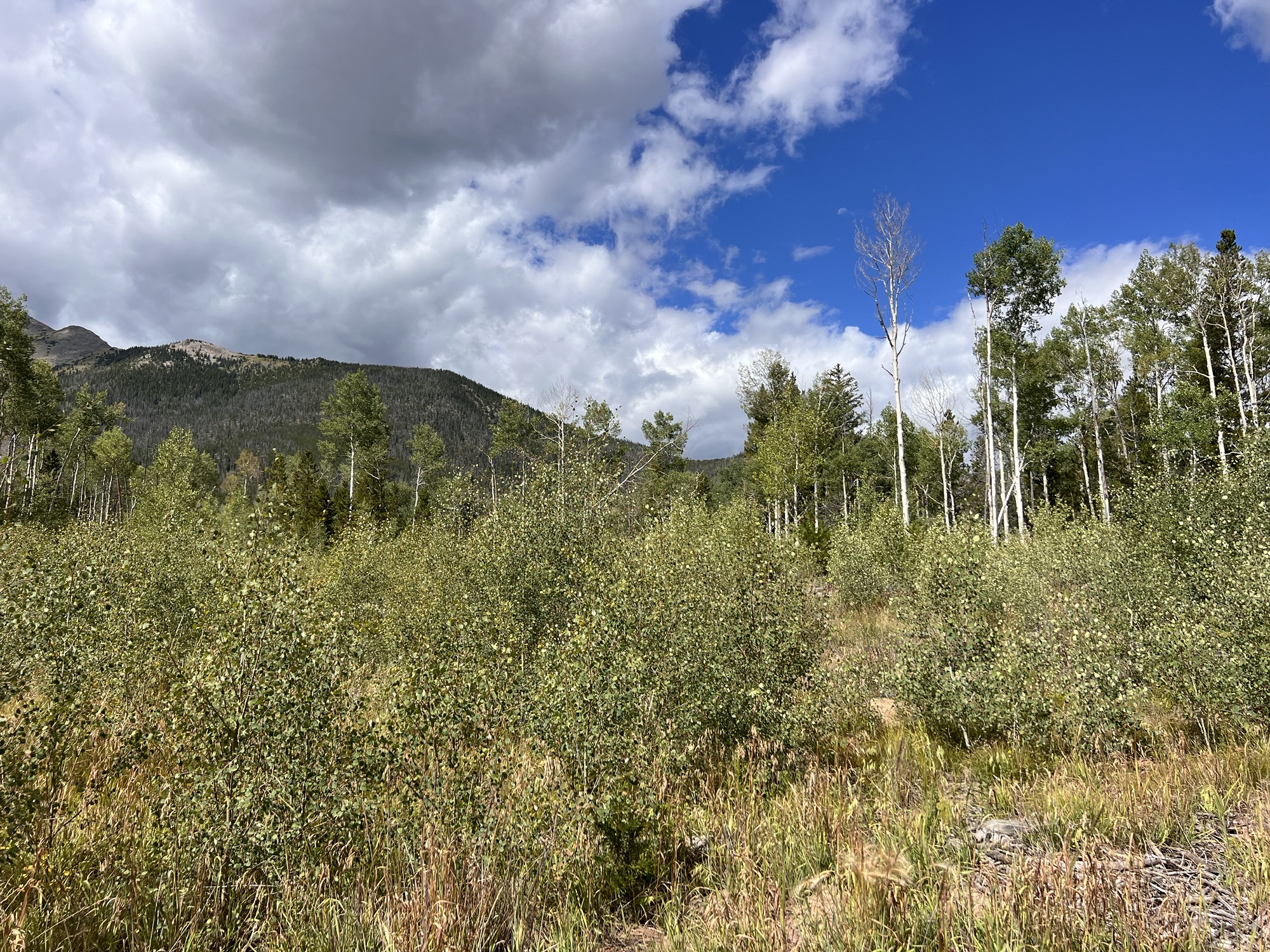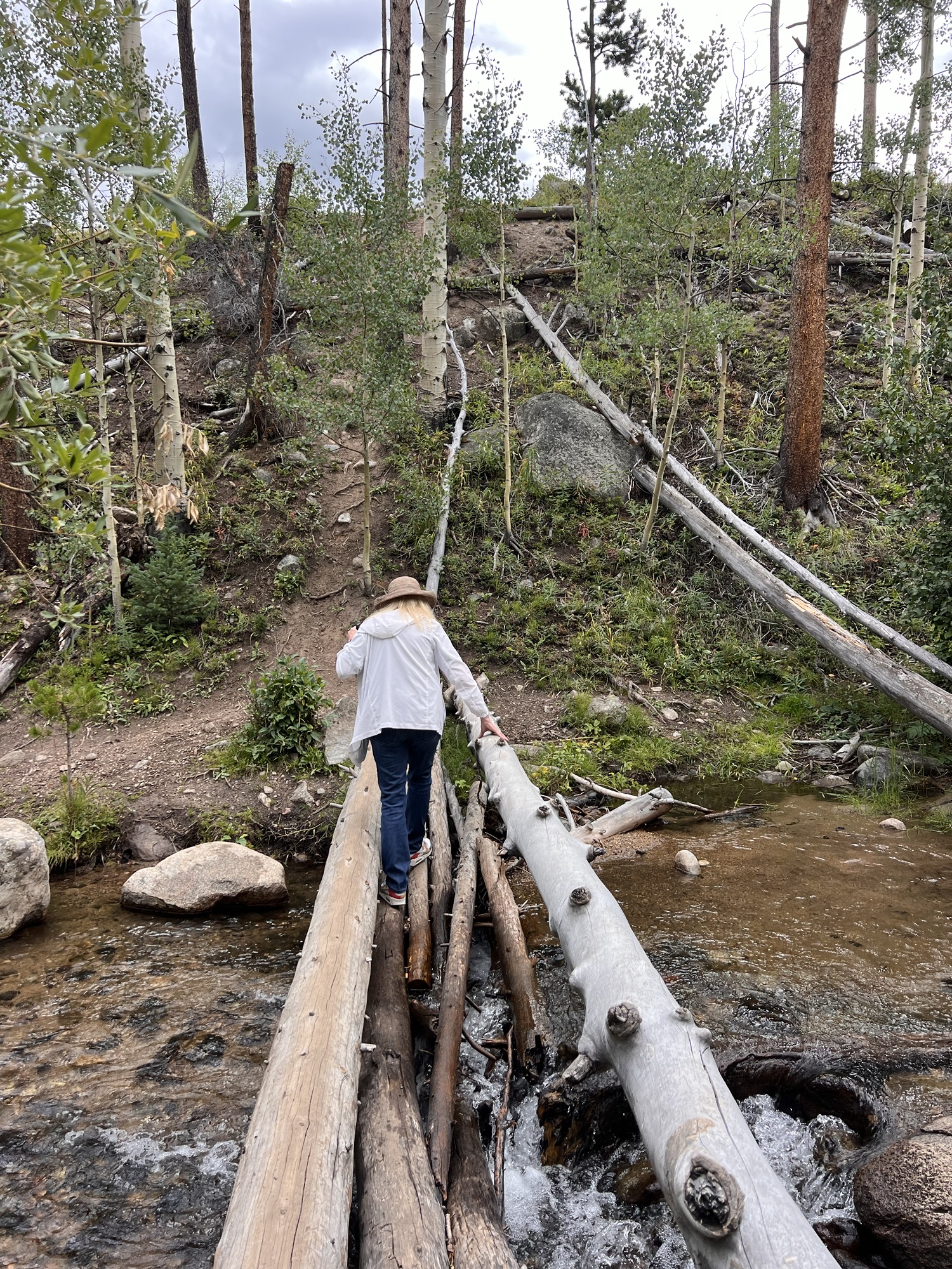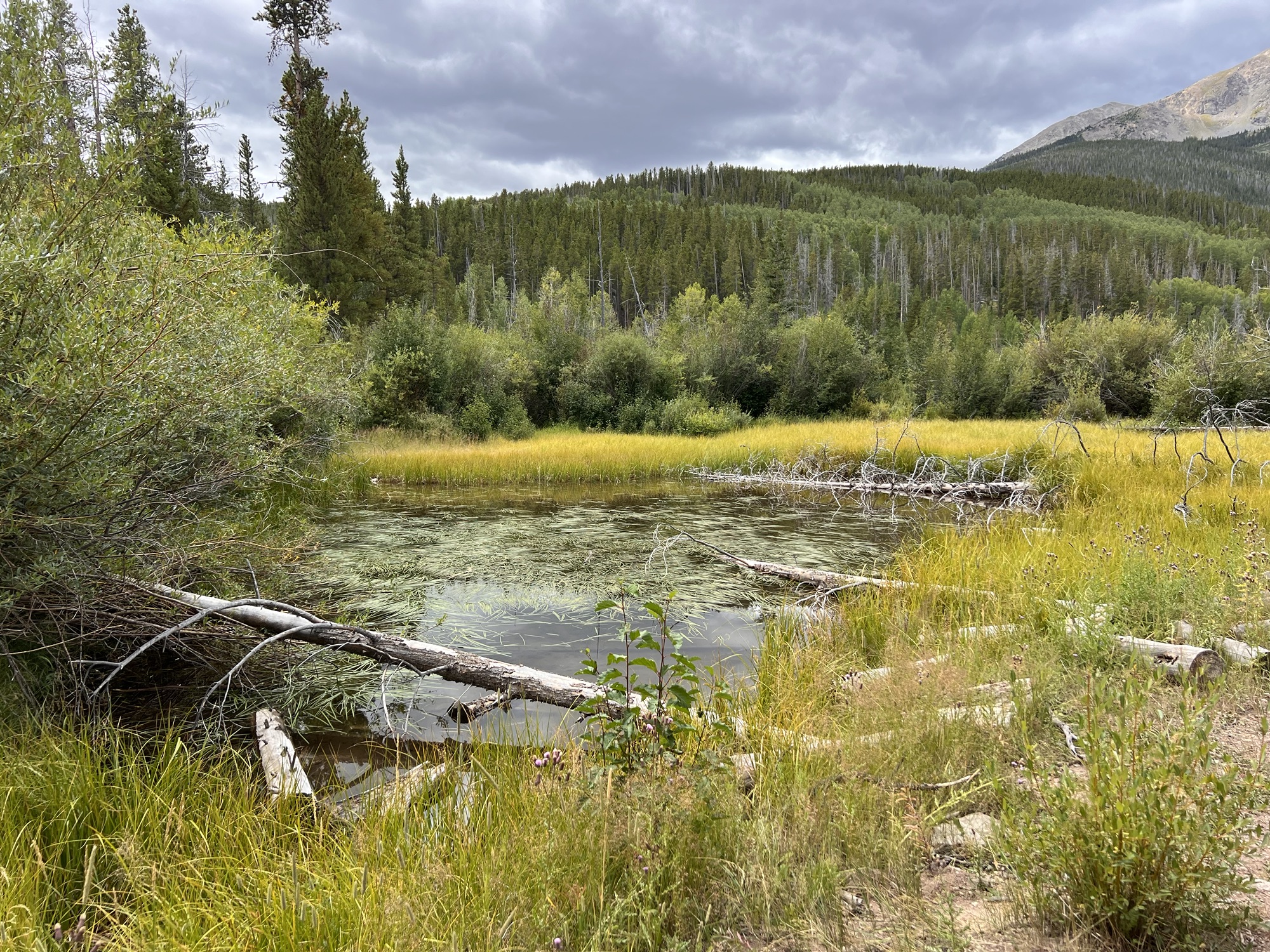 I had a bit o’ trouble sleeping due to altitude headache, but it ended up fine. After coffee on the balcony I intended to just walk down the road here in Breckenridge, but ended up finding a beautiful trail along a creek. I went down it and listened for birds, until I had to get back to meet up with my local friend.