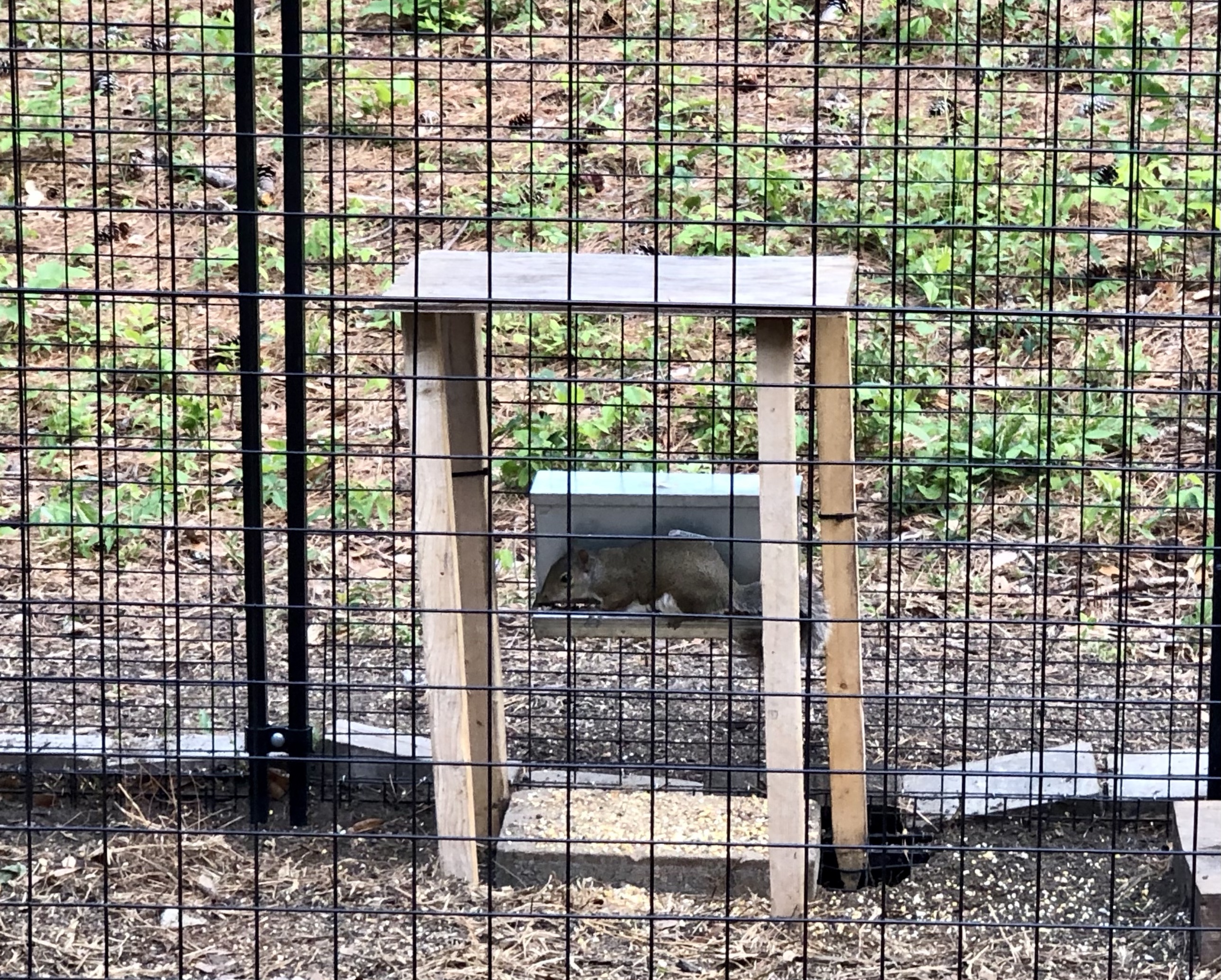 After the butterflies, we hopped back over to see the red wolves again, hoping maybe they’d be up to something this time. We lucked out, and while the female was just resting in the sun, the male came out of his giddy hole, walked around, then rolled and stretched for us. I guess that was enough of a show for him, because he went right back into his shady spot. We were lucky to see this!