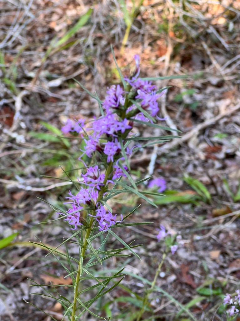 We found some pretty flowers among the trees, including exuberant liatris, pink ruellia, and these darling tiny blue curls.