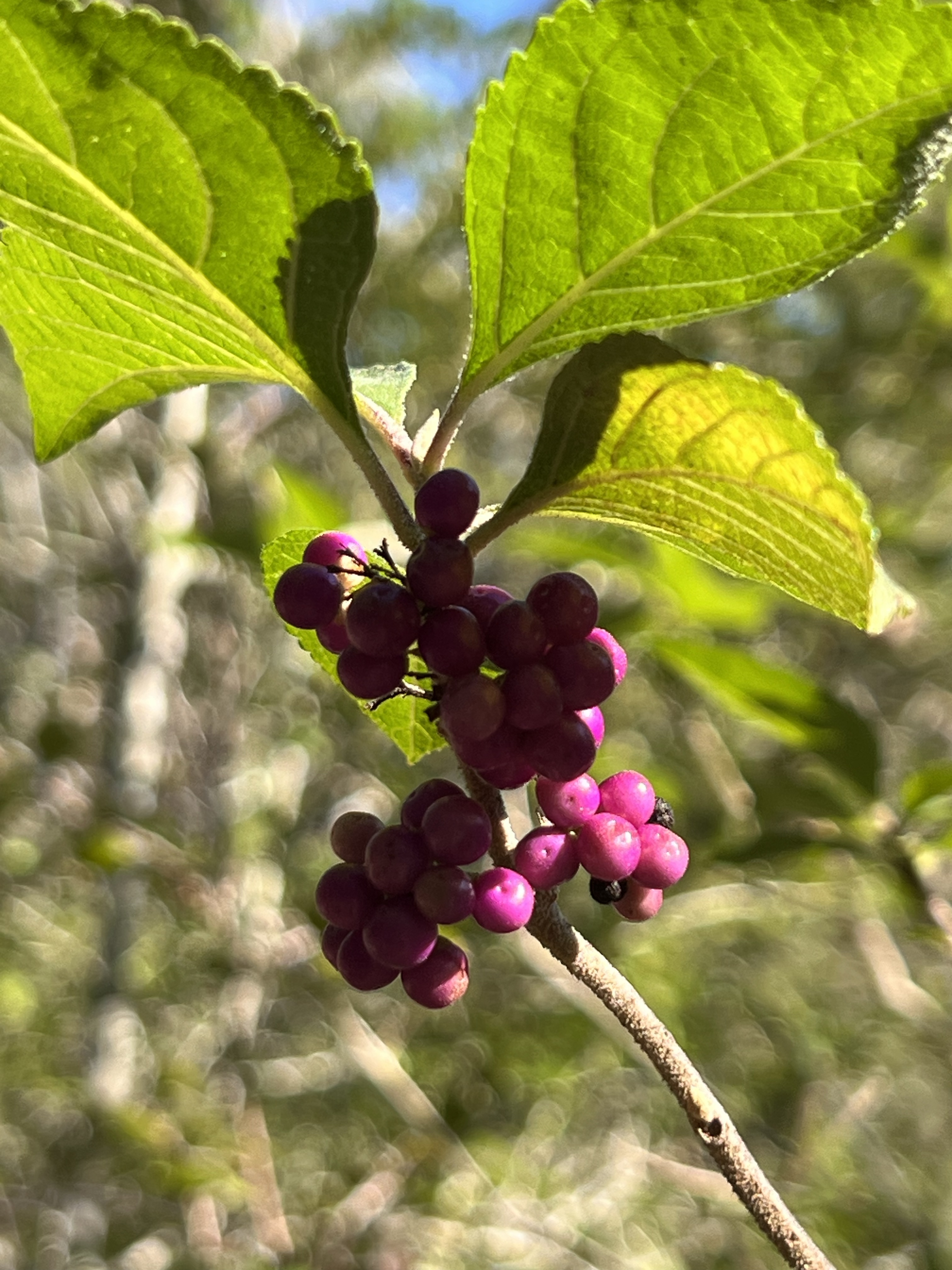 It flew over to a vine just beyond the edge of the woods. The butterfly spent a lot of time going from leaf to leaf. I actually hadn’t noticed the vine before, but looking at it I realized it resembled a passion vine. I hadn’t seen any here yet, and there it was, right in front of me.