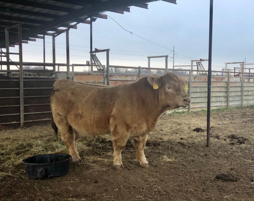 Yep, there was a bull I’d never seen before. He was, to say the least, beefy, quite a load of bull. I was like, uh oh, he probably won’t like me going around messing near him. I could see that he’d been upset and dug the dirt and mud up in the pen. So I said hi.