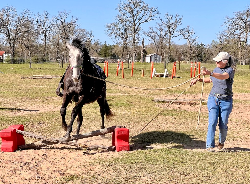 They practiced the saddle falling off, too, to teach her to stop and look if someone or something falls off. That’s good safety! I learned a lot about how to get a horse off to a good start.