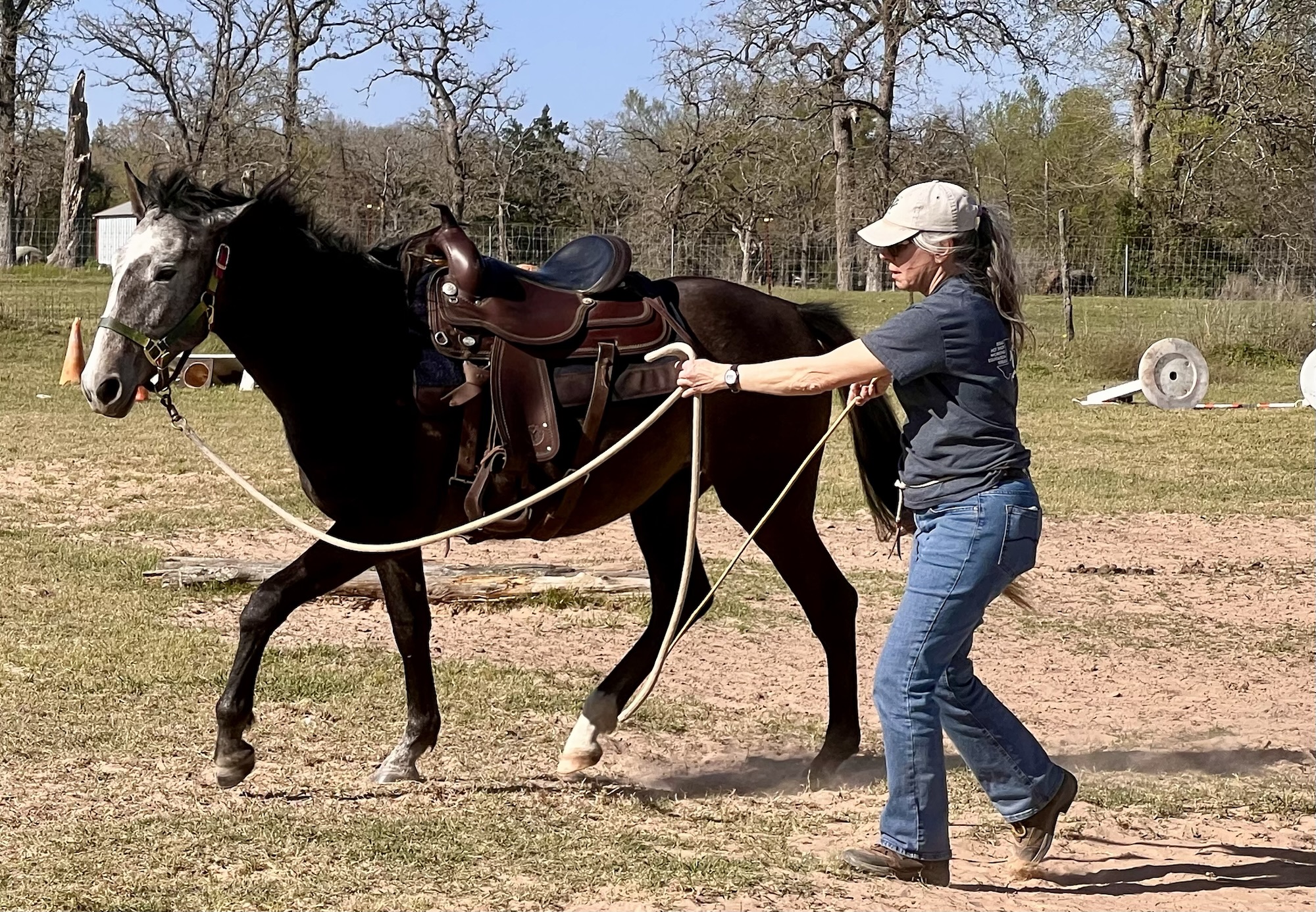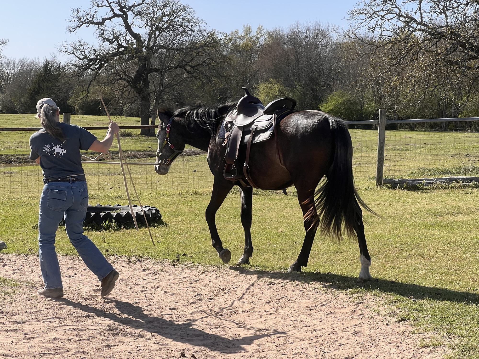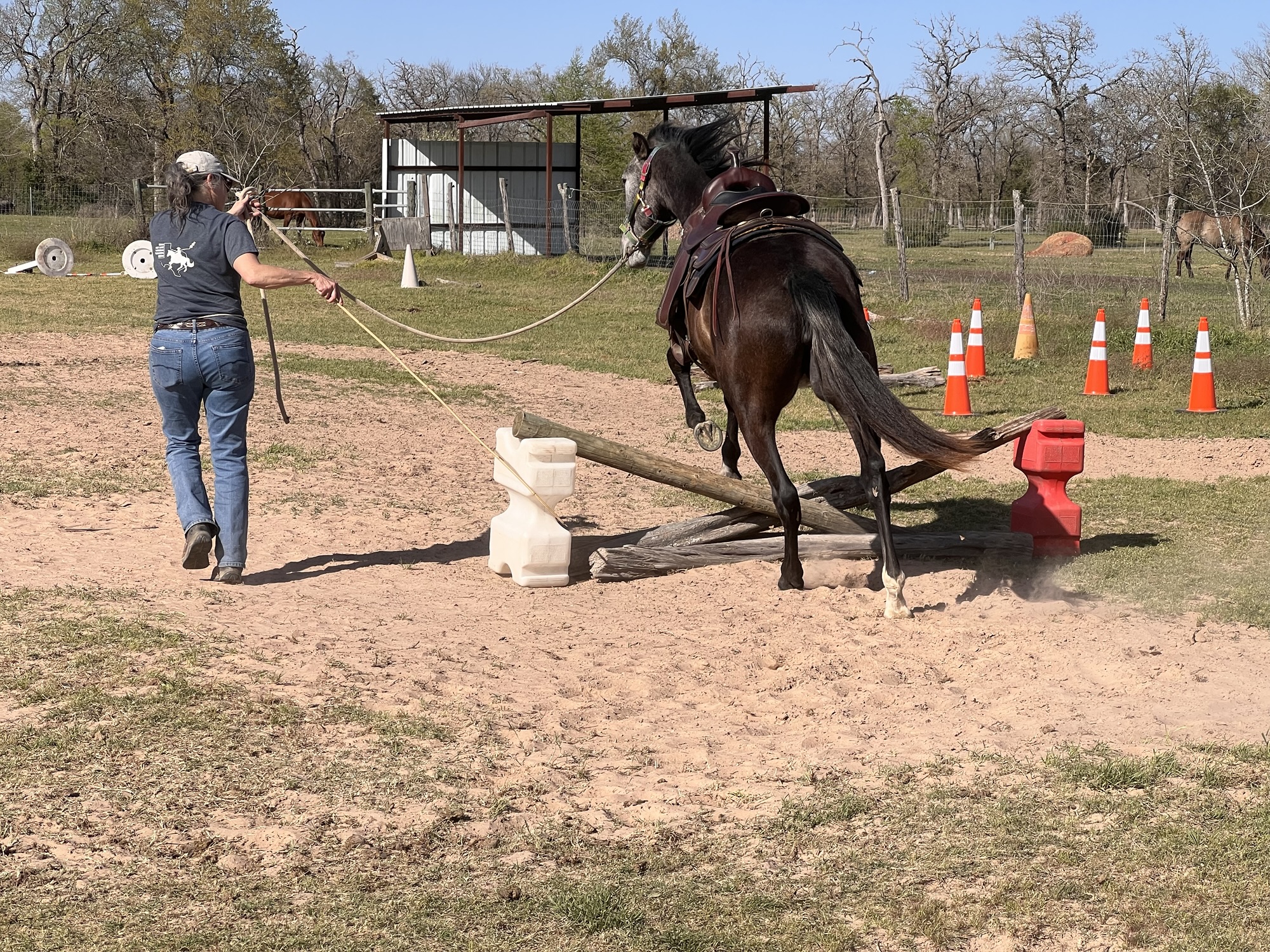 They practiced the saddle falling off, too, to teach her to stop and look if someone or something falls off. That’s good safety! I learned a lot about how to get a horse off to a good start.