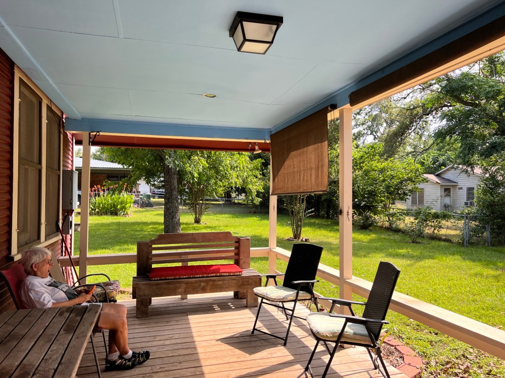 I had a lot to do today but nothing too stressful. After our weekly friends’ lunch, Anita came over to get the Red House ready for guests while I did a bunch of meetings. It’s nice to hang out. And after work, we sat on the porch, taking advantage of the sunshades.