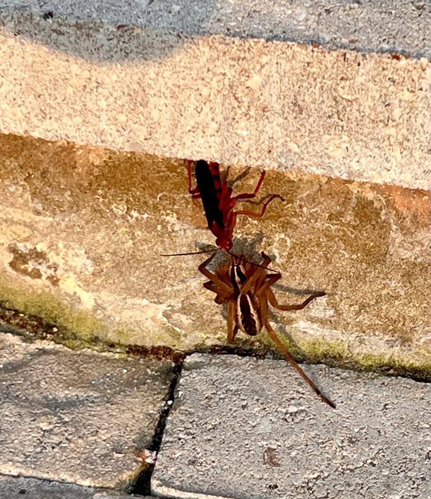 Kathleen and I even saw another one of those cool spider wasps dragging along a hapless wolf spider. It must be wasp breeding season.
