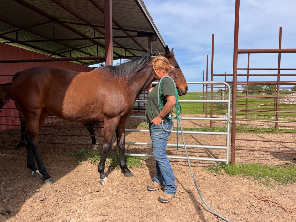 Apache seems to take his leadership role very seriously. At least he’s friendly with me. My daily hugs and exercise are good for us both. We’ve worked hard to get in synch and I can tell he’s in better spirits now.