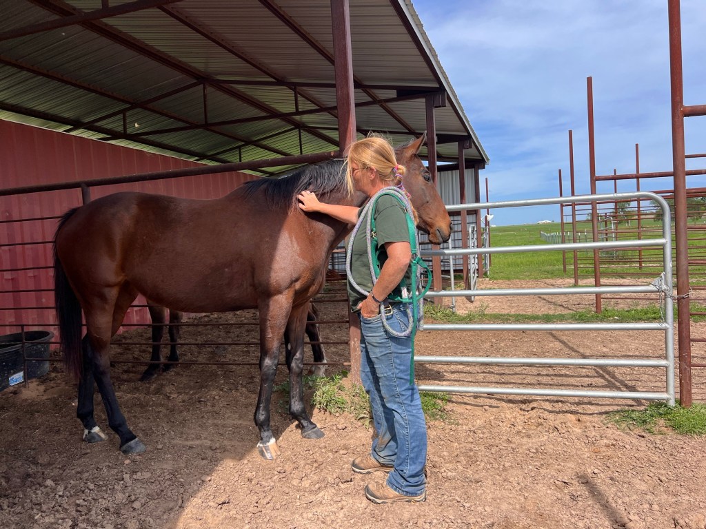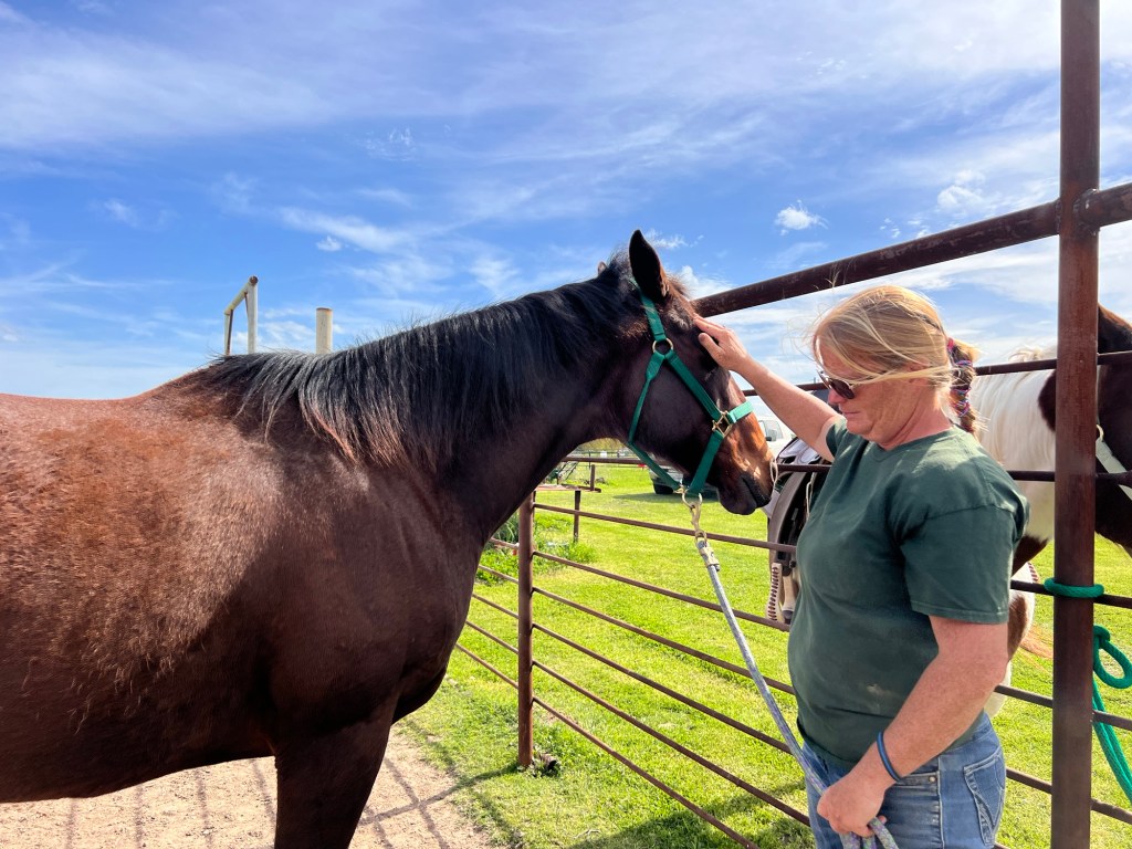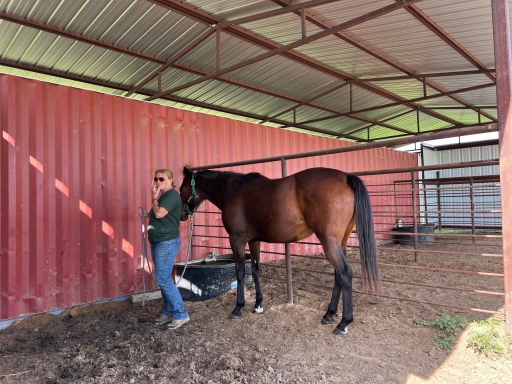 By the end of the session I was brushing her mane out while Tarrin got all the burs off her forelock and mane. Mission accomplished with no stress on my lady horse!