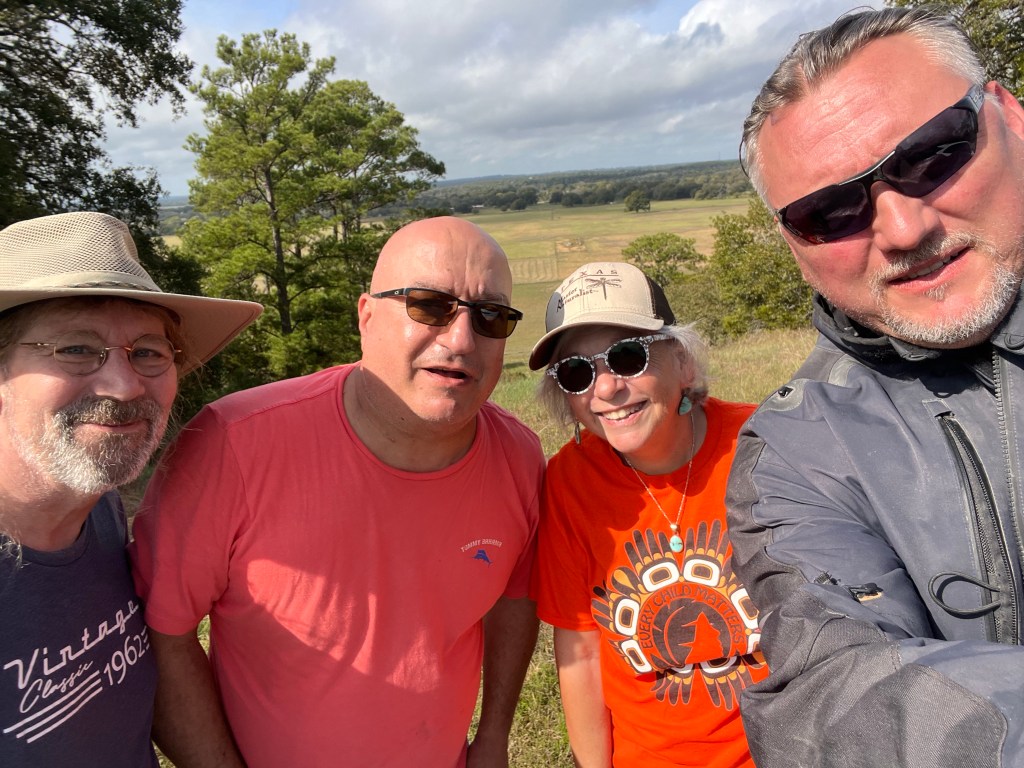 As we were about to leave, two fancy BMW motorcycles pulled up, and off came two delightful Polish men from Houston who were committed to getting off the road and looking at the scenery. Apparently the guy who usually leads their rides doesn’t like to stop. After they assured us they were real people and not AI (well they did look sorta funny in their fancy motorcycle outfits), we had a nice conversation, then took pictures of ourselves. They wanted to prove to their wives that they really went on a drive, not to a bar or something.