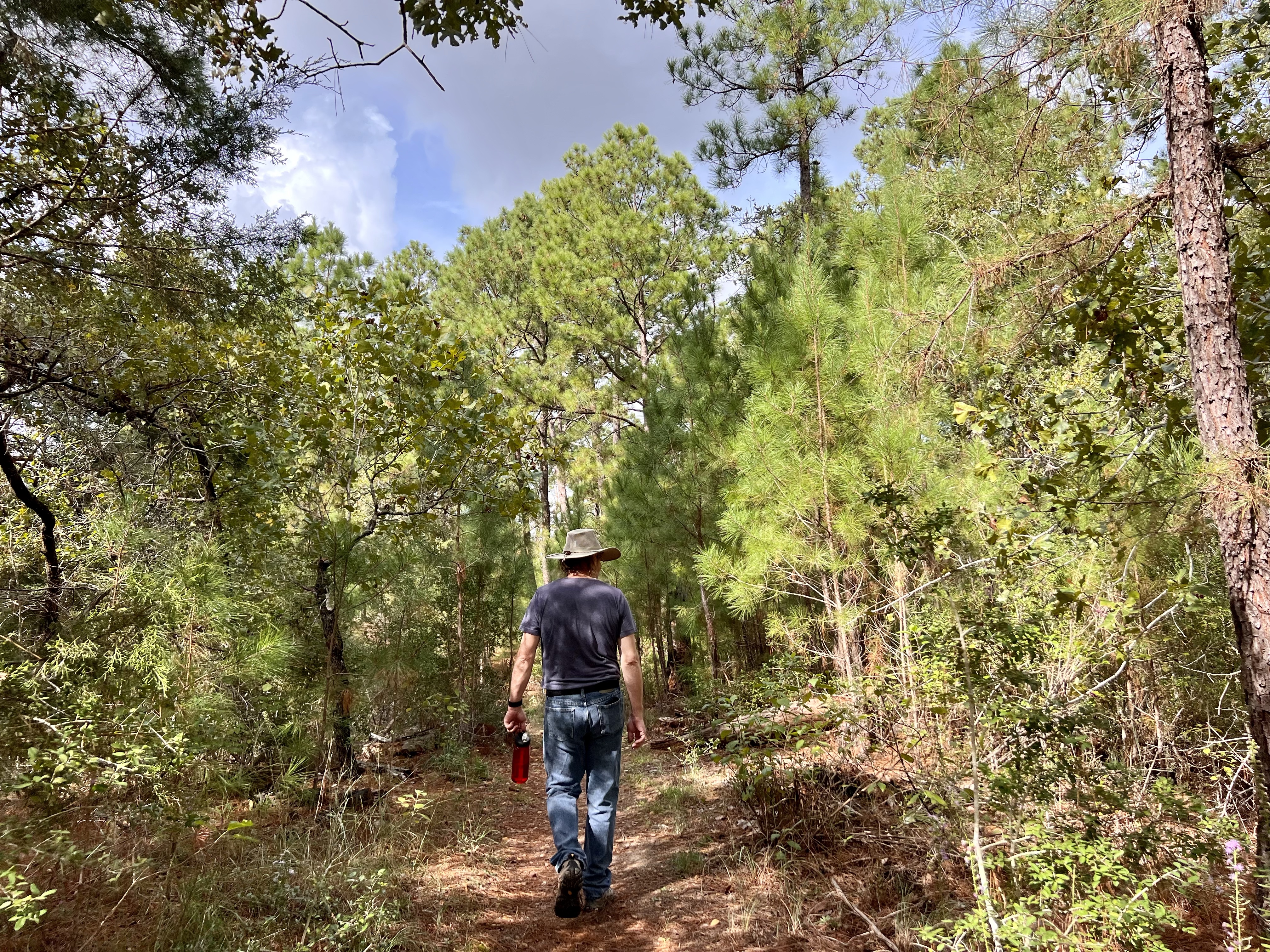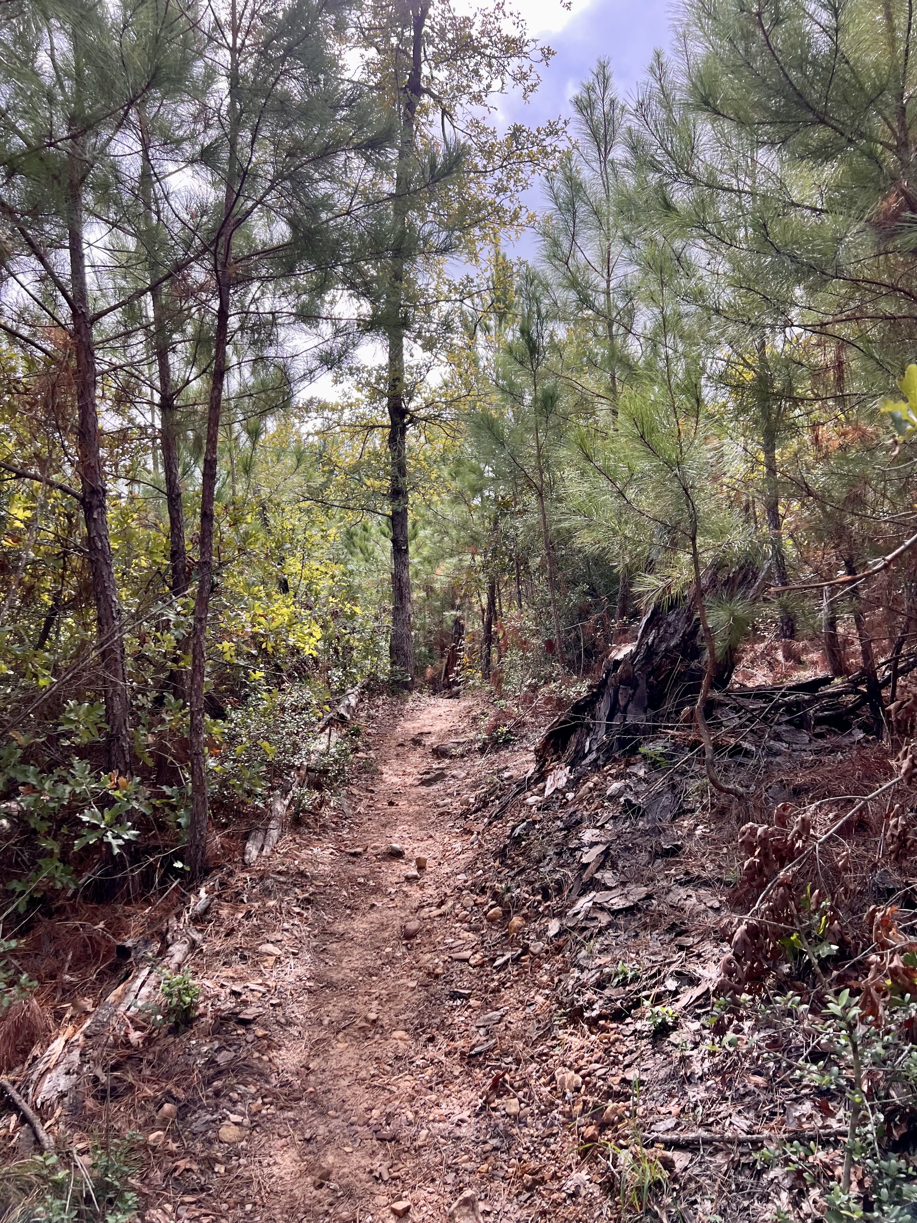 I love all the new people you meet camping! I also love all the new plants and flowers. The trail alternated between deep woods and pretty meadows that were made by fires. Even though it’s late in the year, it was quite colorful, with lots of bitterweed and palafox, with dayflower and poverty weed thrown in.