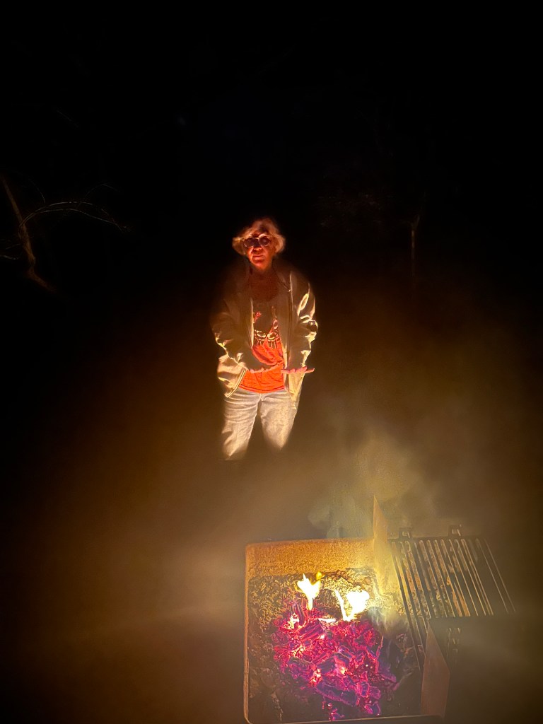 Lee took a couple of fun photos of me in firelight. One looks like I’m casting a spell.