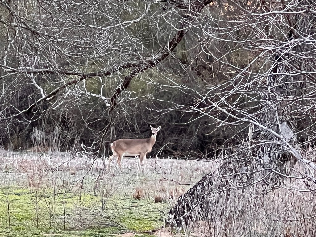 I saw deer and squirrels and even a toad. The deer were not pleased that I separated them, hence the action shot. I have no squirrel photos—the ones here aren’t very tame. There was armadillo and raccoon evidence, but no sightings.