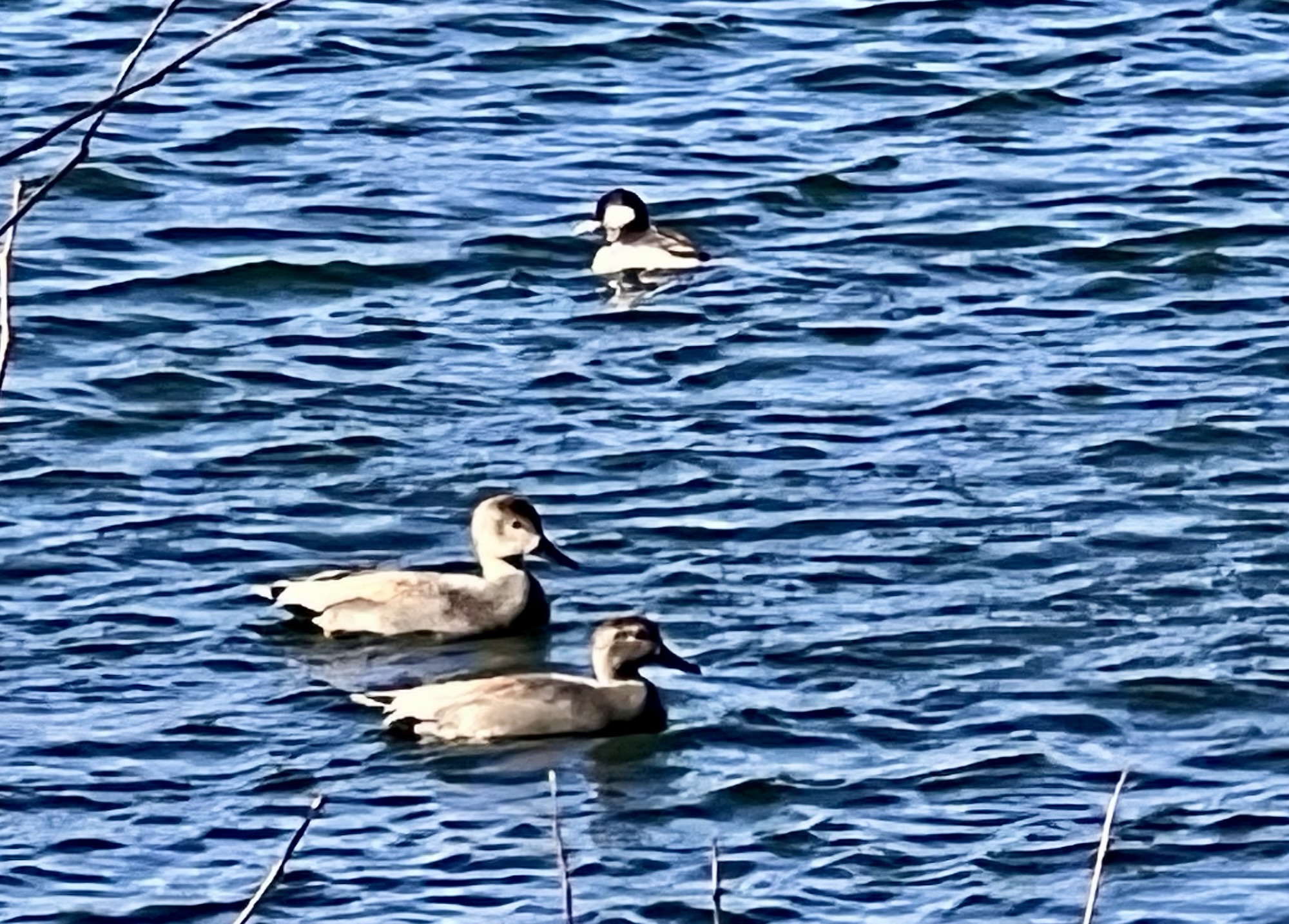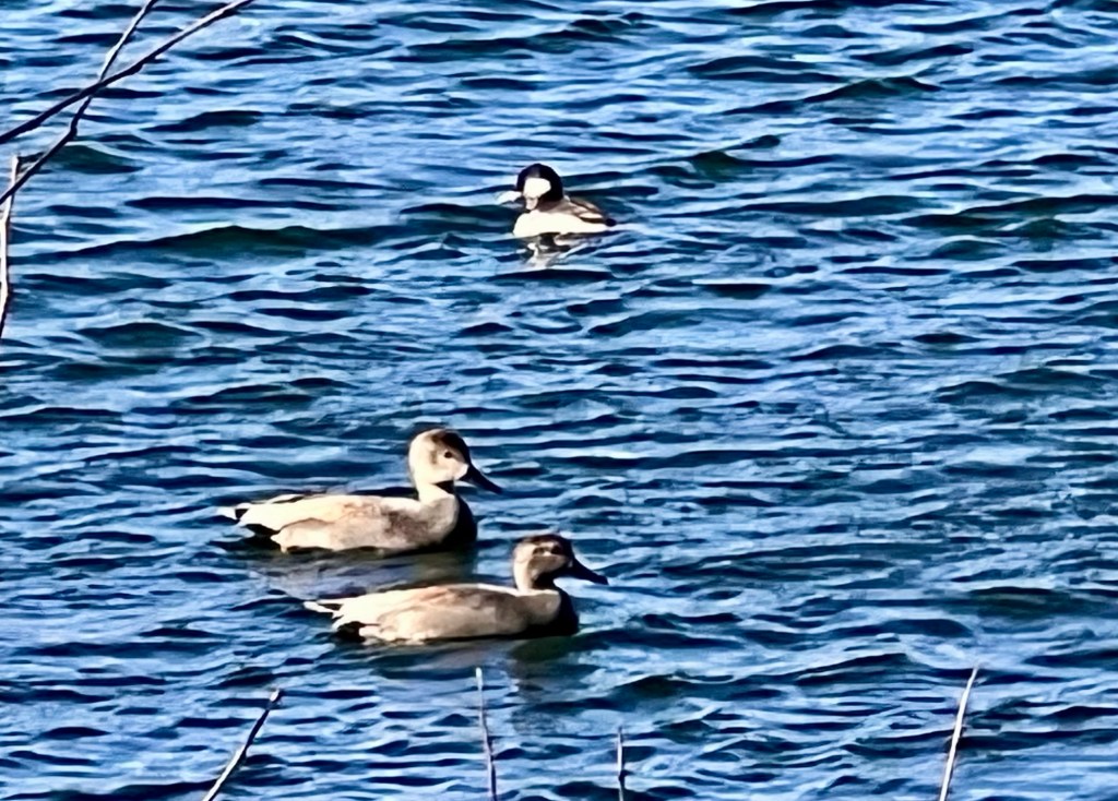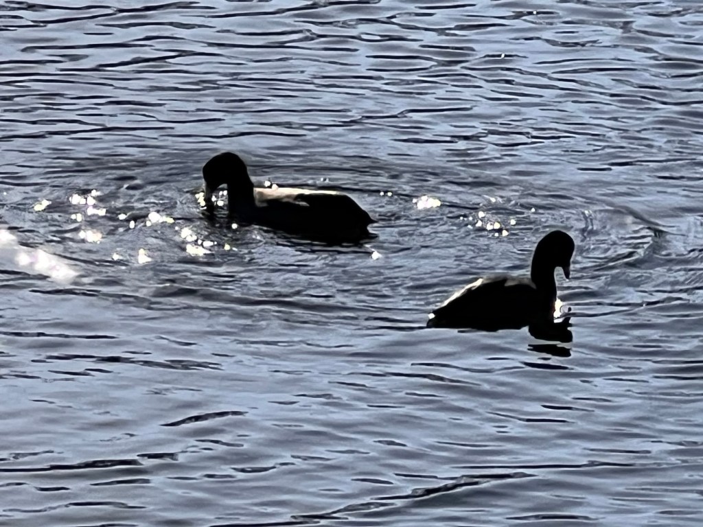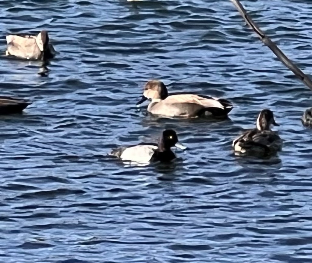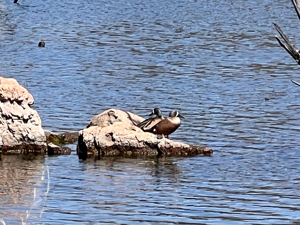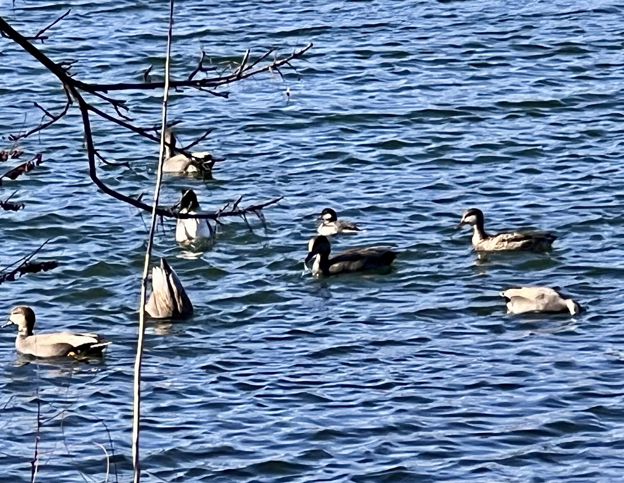 I enjoyed a half hour or so on the fishing dock, which was nice and quiet, other than quacking and honking. There was a pair of white pelicans as well as entertaining coots, a cormorant, and many ducks, including a Lesser Scaup in the mix. I greatly enjoyed the diving and popping back up that they were all engaging in. Just being around water and the life it supports made me feel better.
