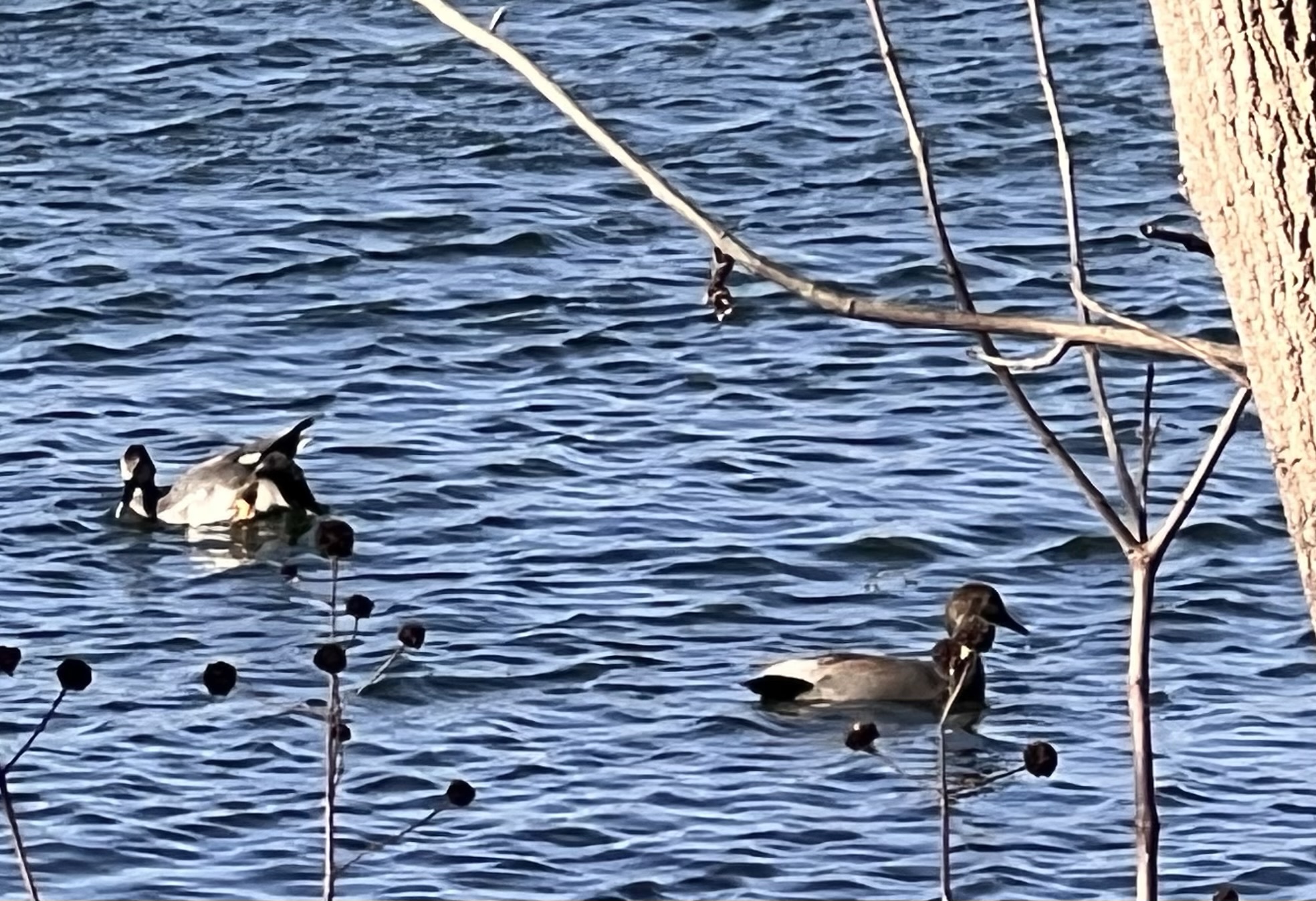 Great Egret and Anhinga pairCoots!Valentine nailsGadwallsFleeing ducksAn inlet with junk that usually is underwaterWhat filters the lake water This is not a scenic lake. Coot!Around the lake