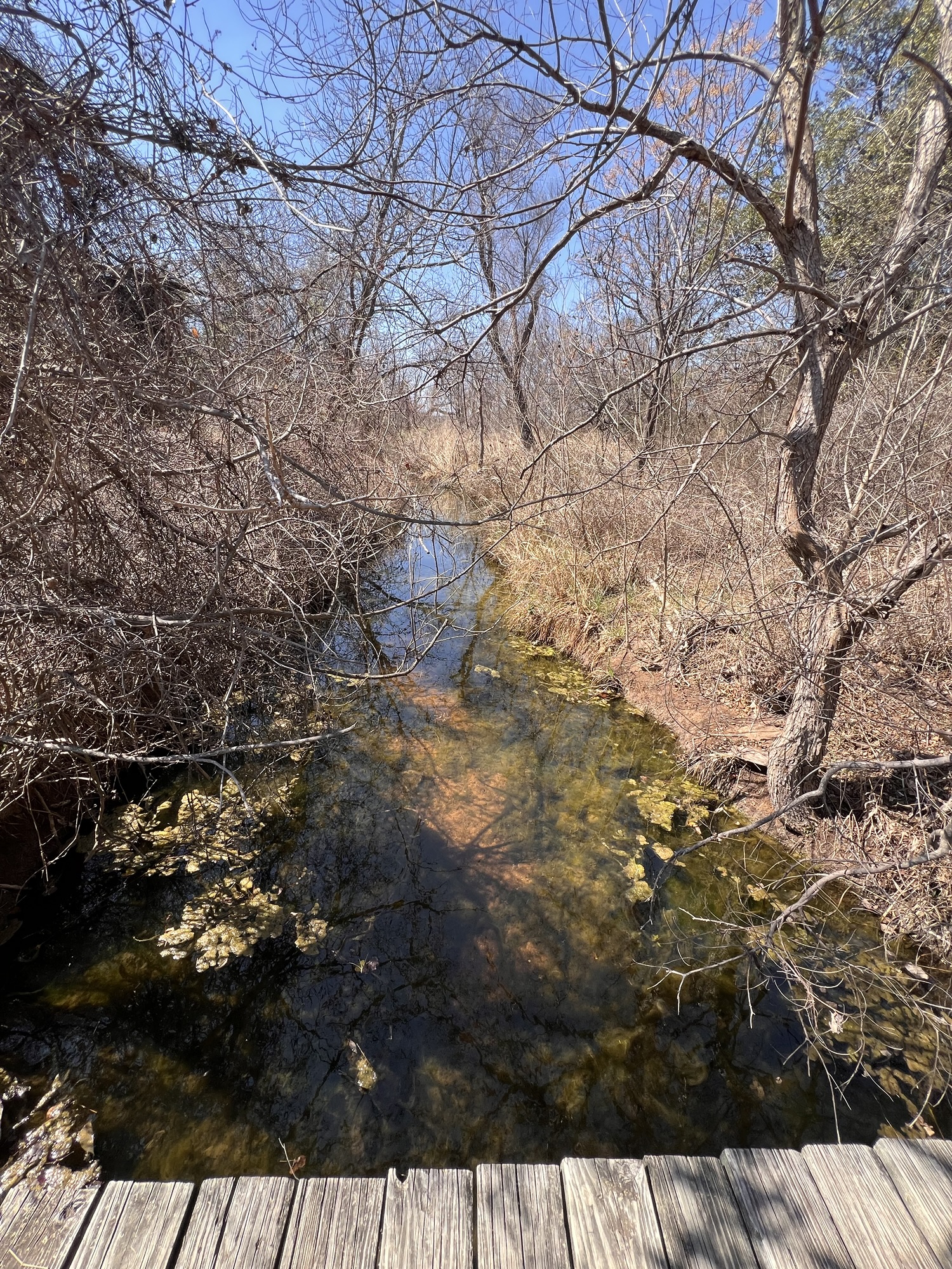 I threw on clothing I could get dirty and headed out to the trails on the cool island in the lake, which has a convenient bridge.