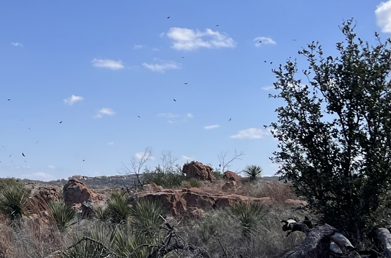 I did encounter more great birds before we left Lake Brownwood. I listened to a Greater Roadrunner calling for at least an hour, punctuated by Wild Turkey calls. A Black-and-white Warbler plus a Pyrrhuloxia also dropped by.